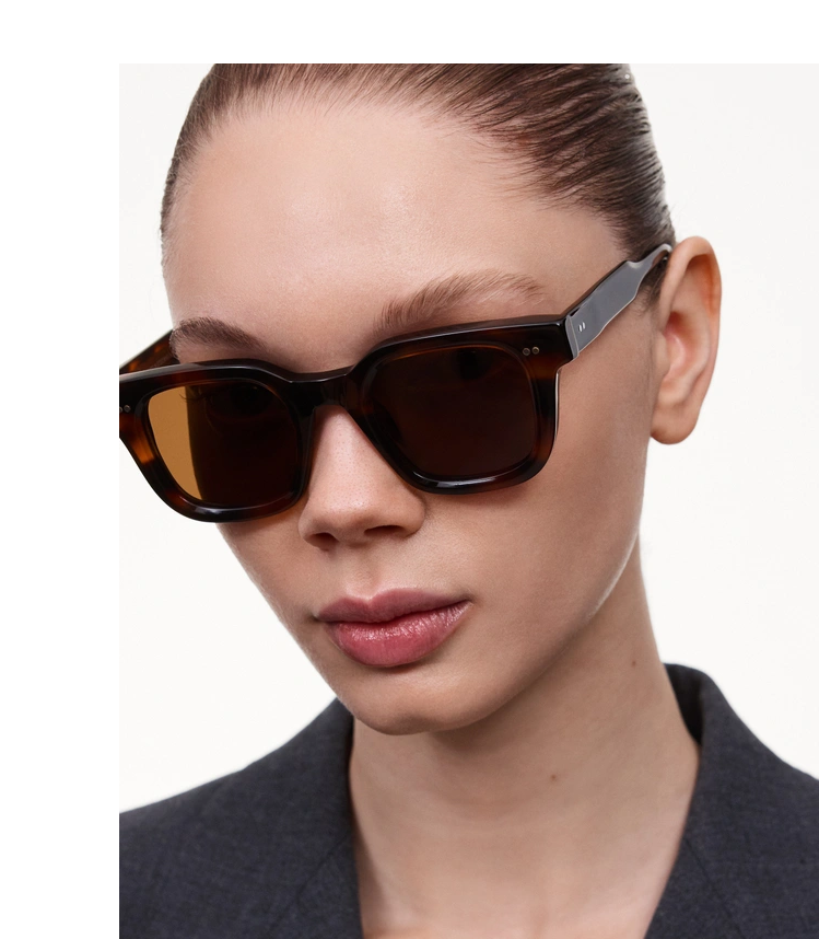 Effortlessly bold. Model 04’s strong squared frame, slim sides and deep bevel cuts redefine modern sophistication. Silver-tone rivet hinges complete its confident silhouette. Features a flat lens for a contemporary edge. Handcrafted in acetate – an adjustable material that flexes to fit. Perfect for small to medium heads.