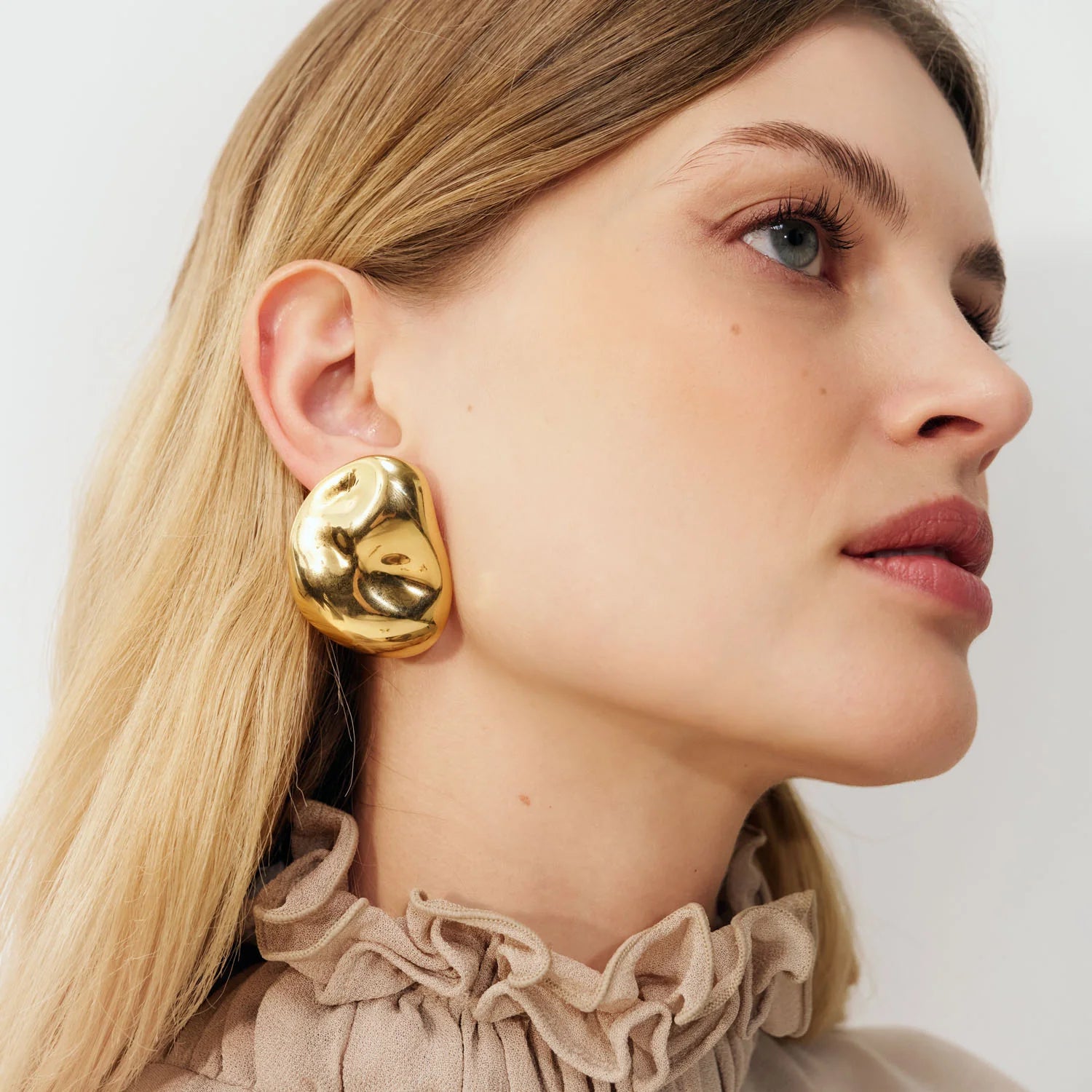 The Big nugget earring is a fascinating piece of jewelry that delights with its uneven surface and striking size. The natural, irregular shape gives the earring a unique, organic aesthetic. The textured surface reflects the light in an impressive way, making the earring shine and come alive with every movement.