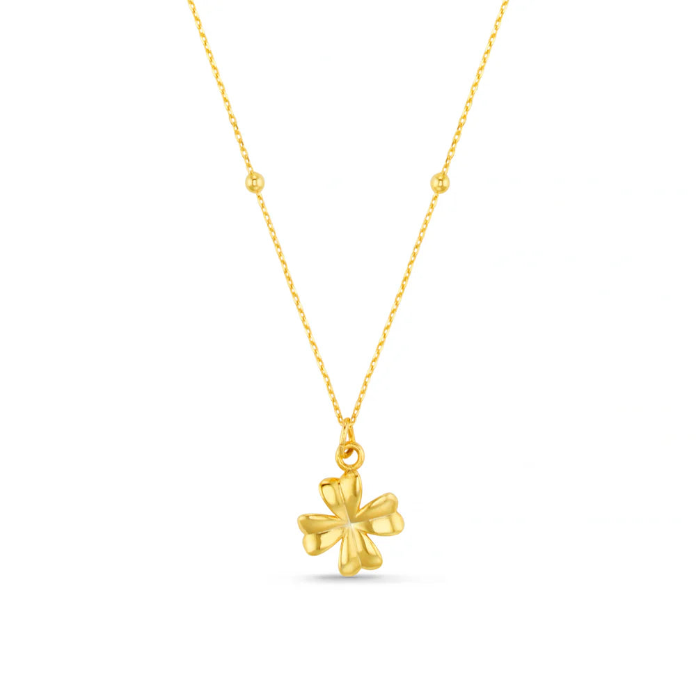 The Clover Charm Necklace features a delicate, lucky clover pendant. With its timeless design, this necklace adds a charming and meaningful touch to any look.