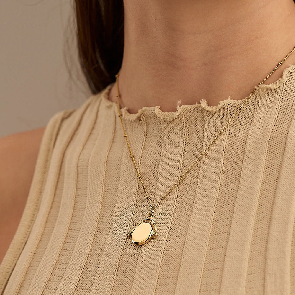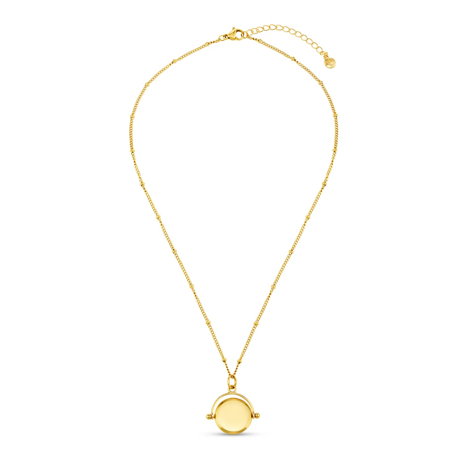Make it personal with the LUXE Faceted Disc Spinner Necklace in Gold.