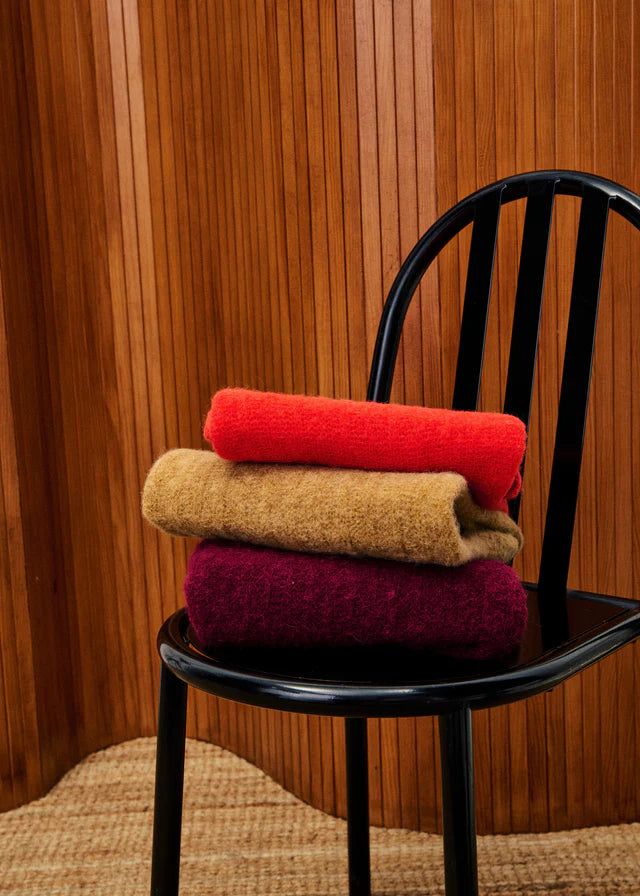 Elevate your autumn wardrobe with our Rouge Scarf. Made of 37% Polyamide - 30% Wool - 30% Alpaca - 3% Elastane, this scarf will keep you cosy yet chic in the colder autumn months.
