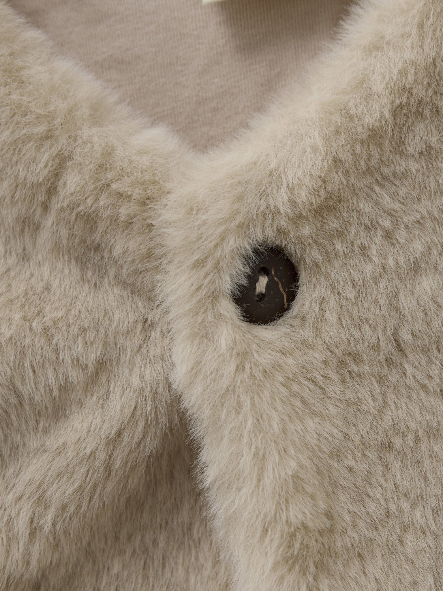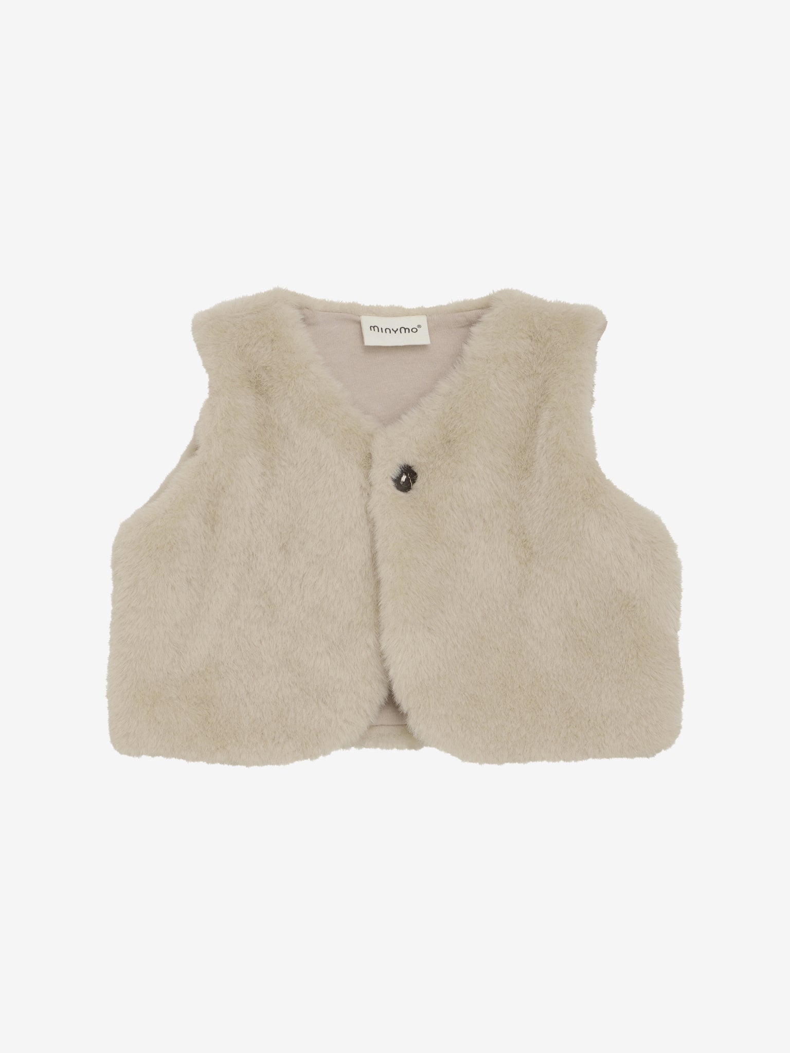 Stylish vest from Minymo. The vest has a cool faux fur look and is ideal for both dressy and casual occasions. It is made from 100% polyester, which makes it comfortable to wear. The vest features a decorative button, making it easy to put on and take off.
