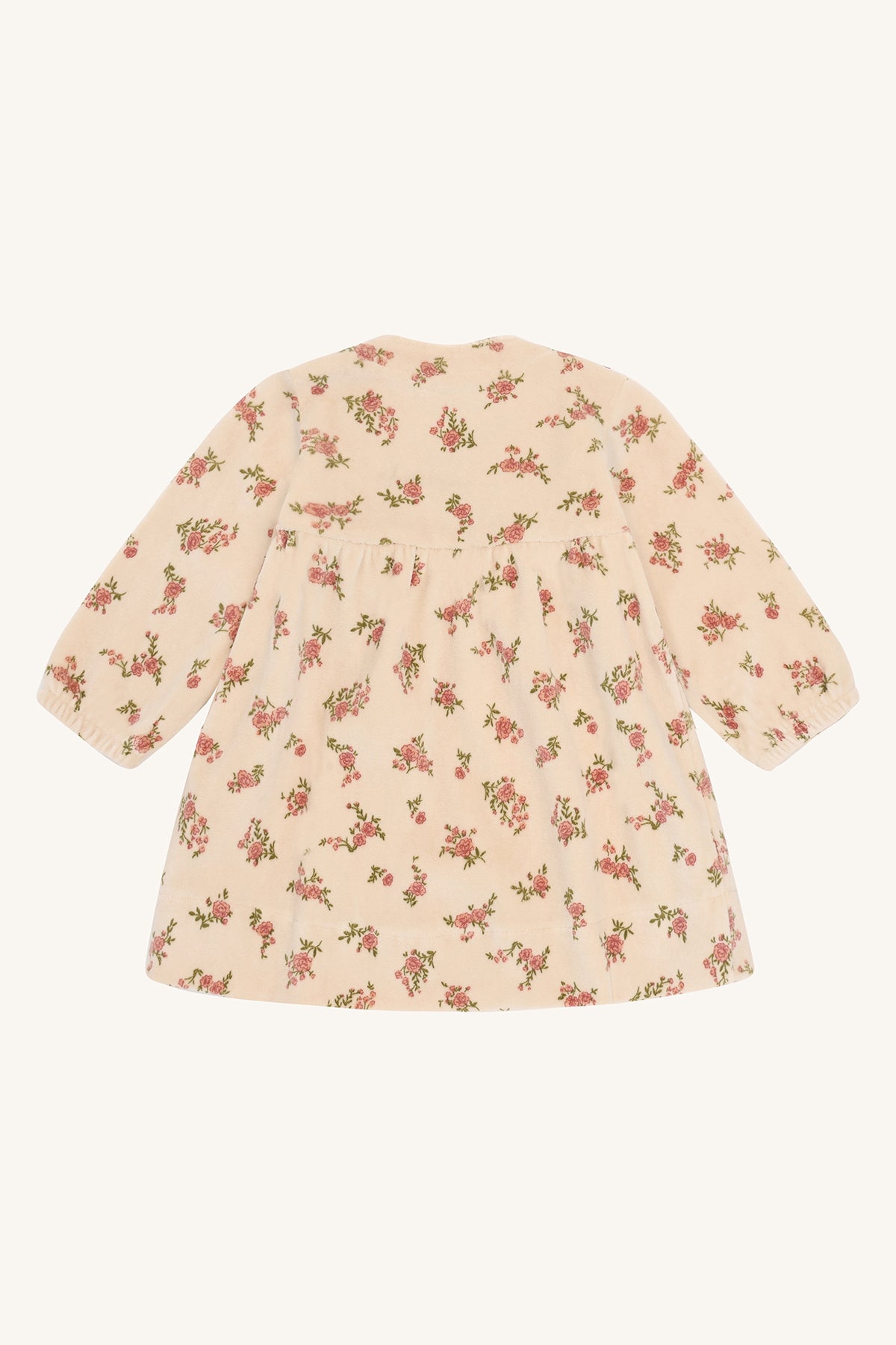 Dress your little one up this winter in our adorable Kis Dress. Featuring a frill collar, adorable ruched sleeve, and floral print. The soft 80% cotton fabric and button enclosure will ensure your little one stays comfy.