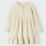 Put together the perfect outfit for your child with this comfortable and stylish cream dress, ideal for everyday wear. Made from soft jersey fabric, it offers a lightweight feel and natural stretch for all-day comfort and freedom to move. Featuring a grandad collar, long sleeves, and button fastening, it’s finished with delicate frill details for a sweet touch. The regular fit makes it an easy, go-to choice for any occasion.