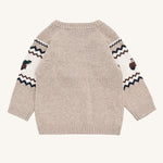 A soft and playful knitted sweater made from 100% organic cotton, designed to keep little adventurers warm and comfortable through the season. The sweater features a charming truck motif knitted across the chest and sleeves, combined with classic zigzag details that add a cosy, nostalgic feel. Gentle rib trims at the neck, cuffs and hem ensure a snug fit while still allowing plenty of movement.
