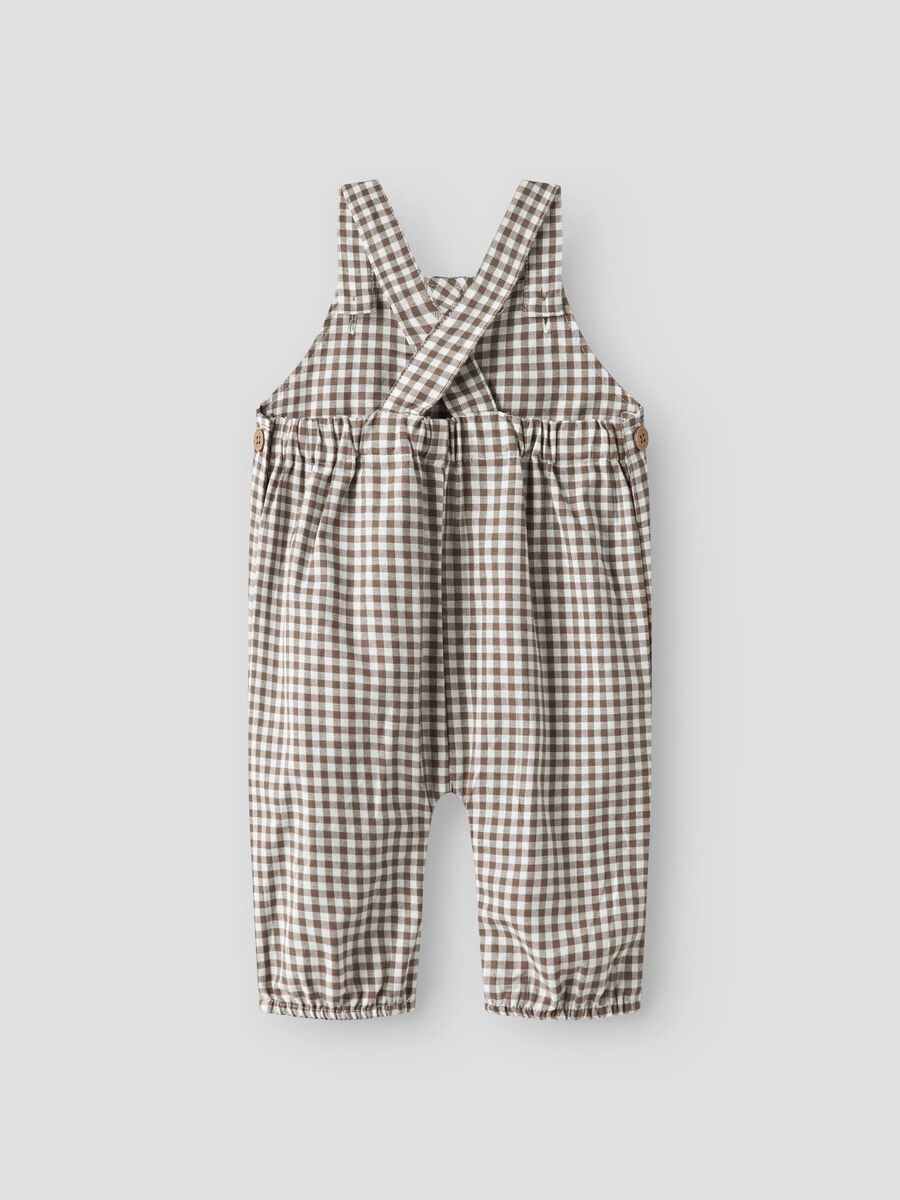 Put together the perfect outfit for your child with quality everyday styles and create a comfortable and trendy look. Woven fabric has a distinct criss-cross pattern and a lightly textured surface for a clean and classic look. Featuring a button fastening dungaree and press and stud fastening at the crotch, these dungarees are fashionable yet functional for your little one.