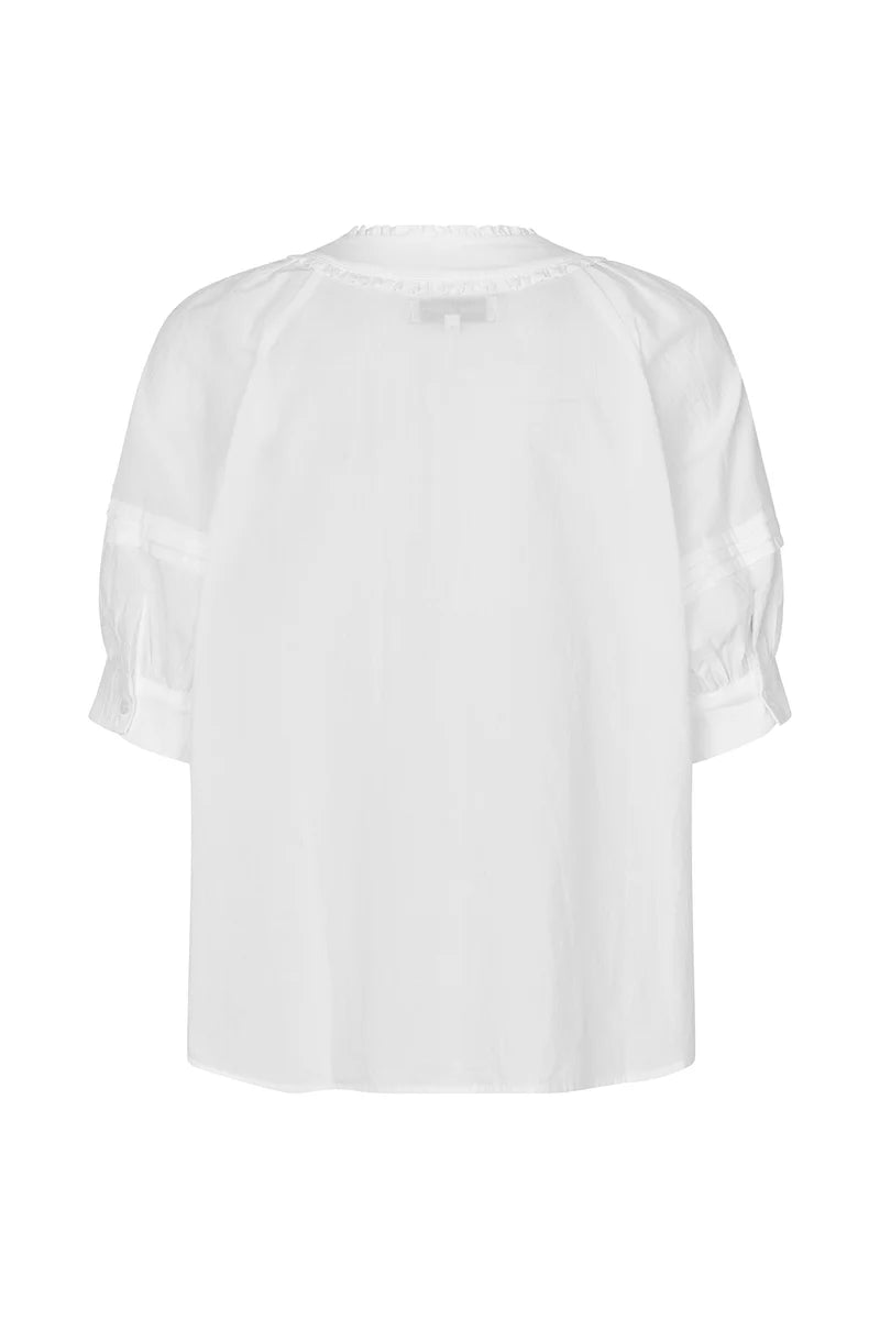 The loose fit makes it comfortable to wear, while the elegant details, such as the small ruffle on the collar, add a sophisticated touch. The Alvi blouse is ideal for both everyday wear and more casual occasions, and can easily be styled with jeans, skirts, or shorts for a complete summer look.