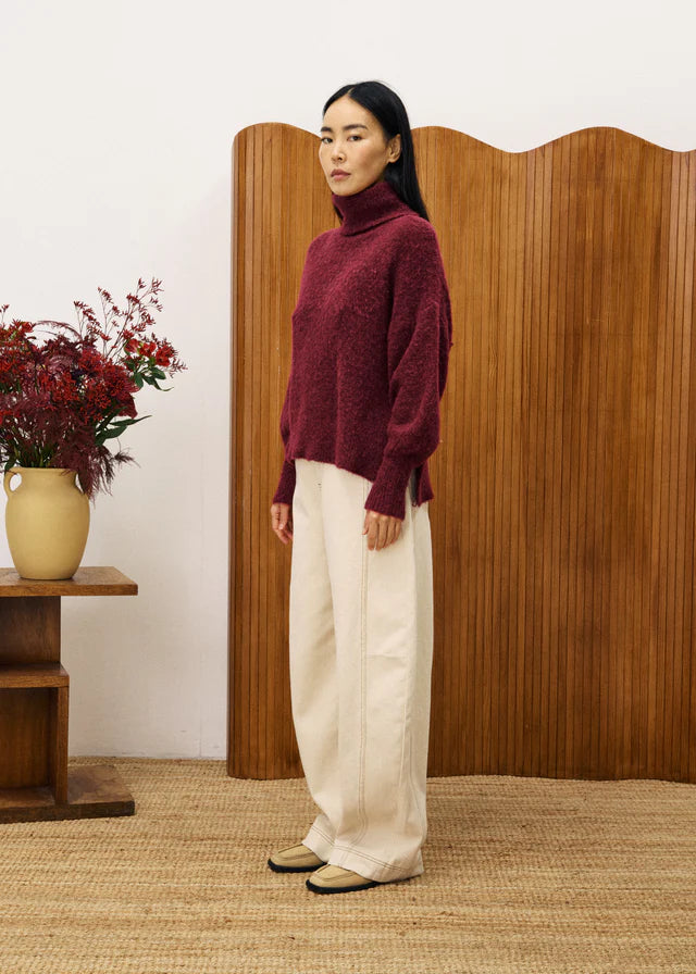 This alpaca and wool turtleneck sweater combines luxurious softness with cozy warmth. Featuring a high collar and long sleeves, it’s the perfect piece for layering during cooler days while adding a touch of refined style.