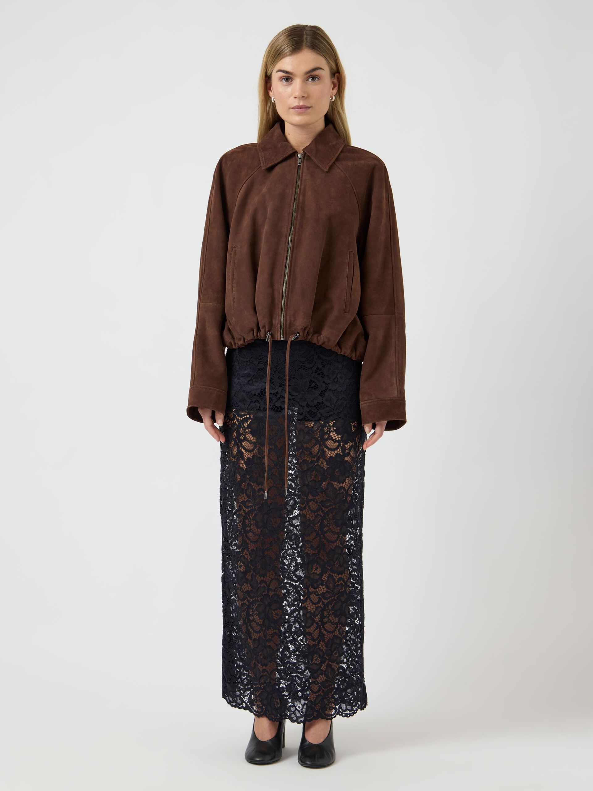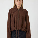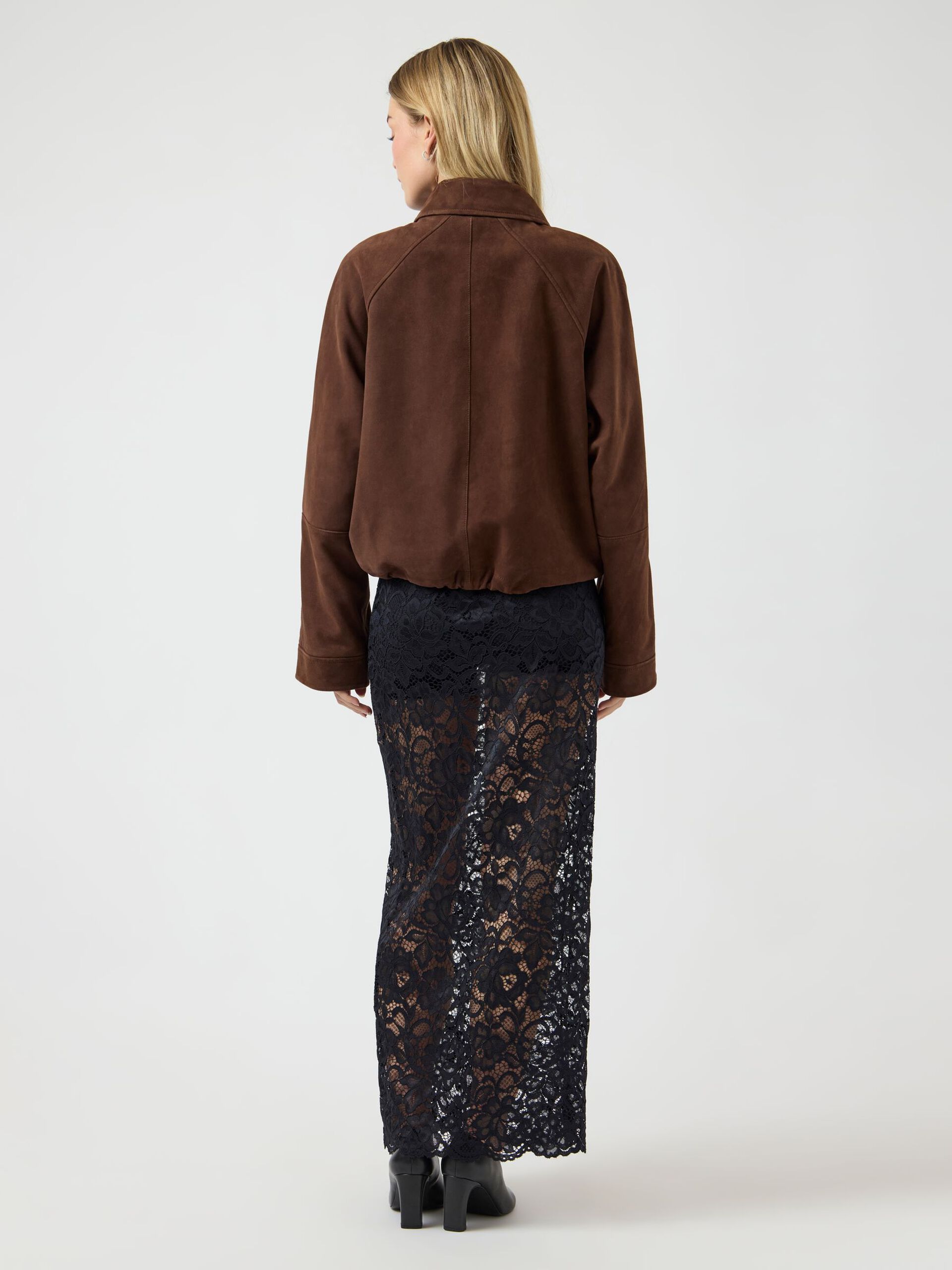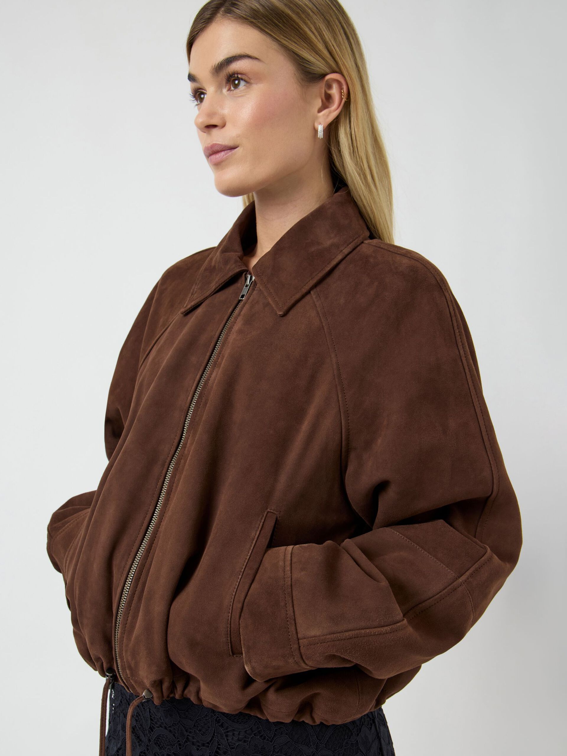A leather jacket never lets you down. Our leather jackets exude confidence and sophistication while also being effortlessly cool and look great with denim and dresses. This style is made from suede, a type of leather that has a soft and peachy surface due to its treatment. It is made from real leather, which ensures an upgraded look and makes it a long-lasting item in your wardrobe. Leather is a by-product of the food industry.