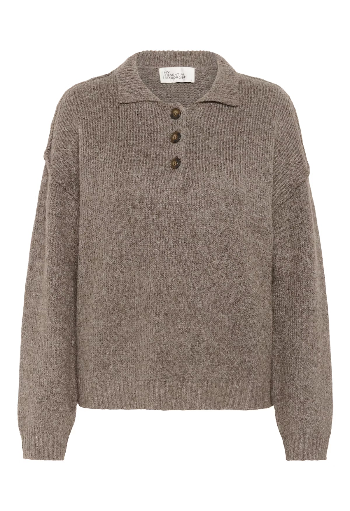 This women’s knit sweater features a relaxed fit, classic polo collar, and ribbed detailing. The buttoned placket and dropped shoulders combine style and comfort, ideal for everyday versatility in your wardrobe.