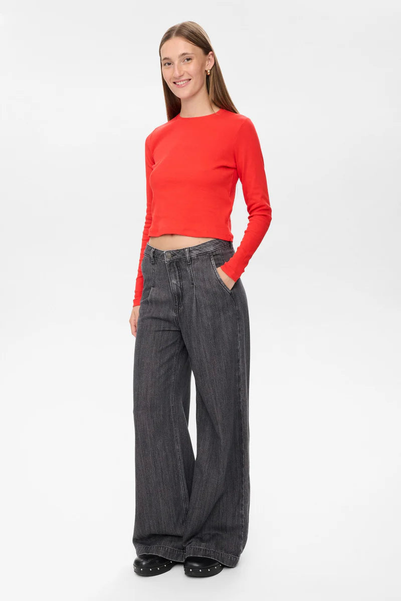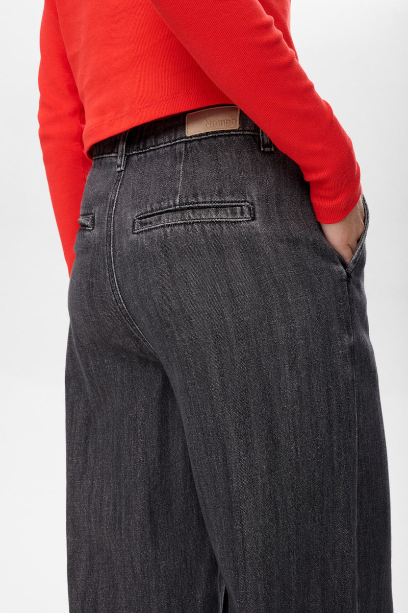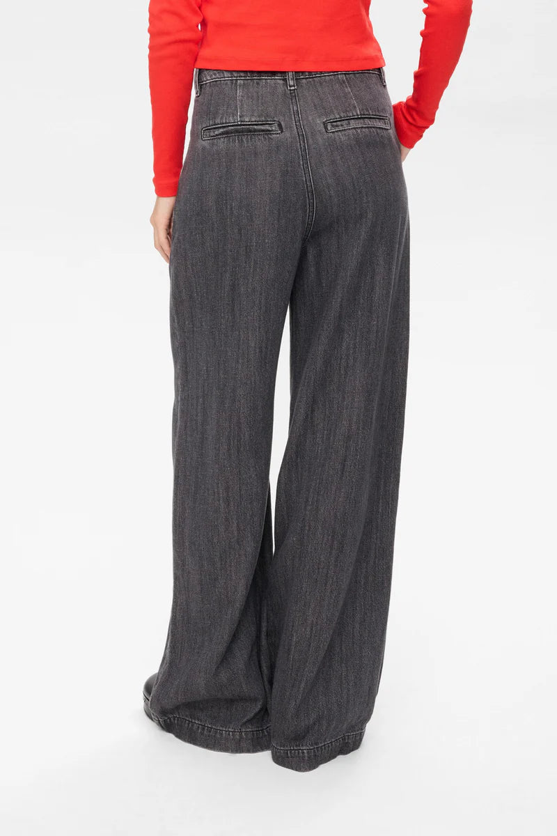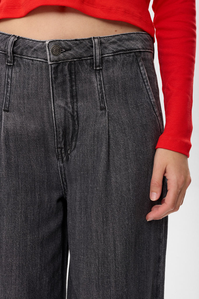 Cut in a shorter length for a modern silhouette, these washed-out black jeans feature clean, invisible back pockets and two functional side pockets at the front. Finished with a button-detail zipper fly and a timeless straight-leg cut, they're a versatile staple with understated edge.