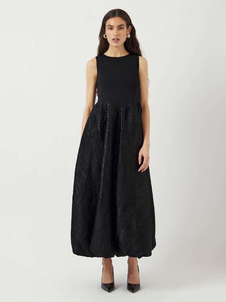 Celebrate every special occasion in style with our Elegant Jacquard Party Dress. Crafted from luxurious jacquard fabric, it features beautiful woven textures for a refined, elevated look. The round neck, sleeveless design, and long length create a timeless silhouette, while the regular fit ensures all-day comfort. Perfect for parties, weddings, and memorable moments.