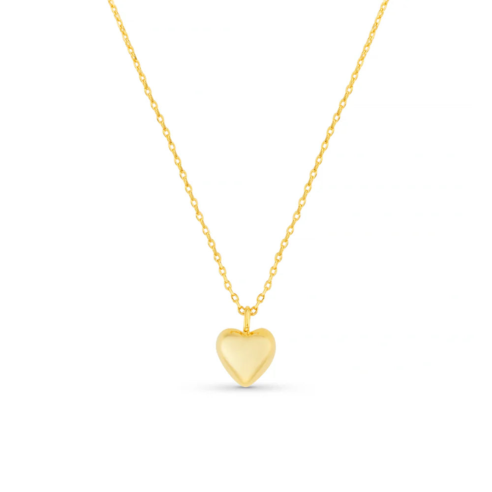The Domed Heart Charm Short Necklace features a beautiful polished heart-shaped charm with a sleek, domed design for a timeless look.