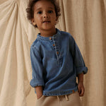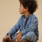Put together the perfect outfit for your child with quality everyday styles and create a comfortable and trendy look. Denim is a durable woven fabric available in several expressions for a unique look. Button denim shirt with shirt collar and buttoned cuffs.