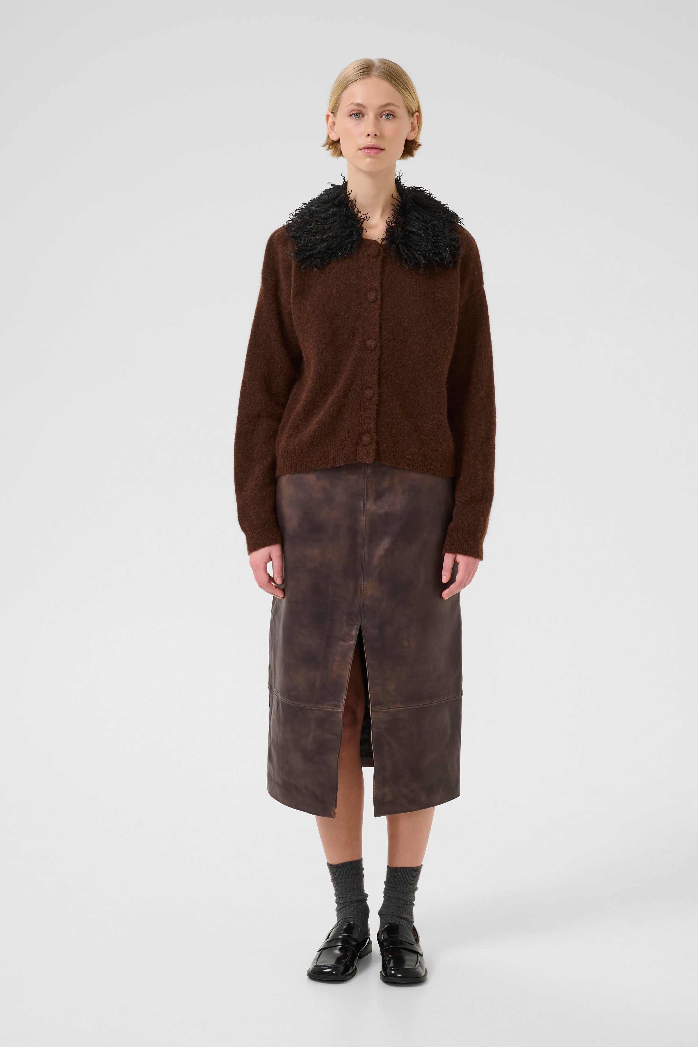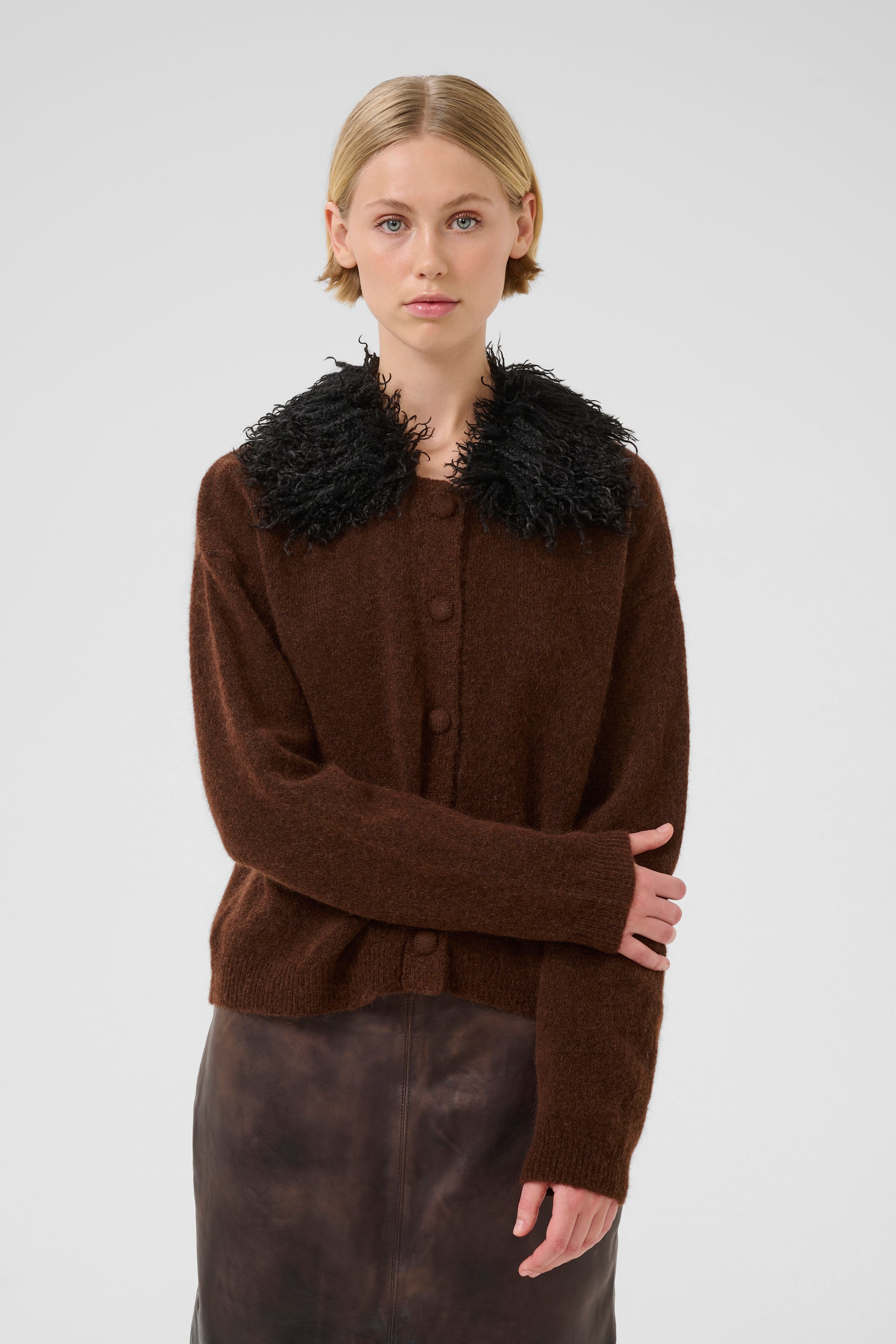 Wrap yourself in effortless elegance with this brown button-down cardigan, accented by a luxe black faux fur collar. Crafted for both comfort and style, this long-sleeve piece blends cozy sophistication with a touch of vintage glamour. The rich brown knit offers warmth and versatility, while the contrasting fur collar adds a bold, fashion-forward statement. Perfect for layering over dresses or elevating your everyday denim look.