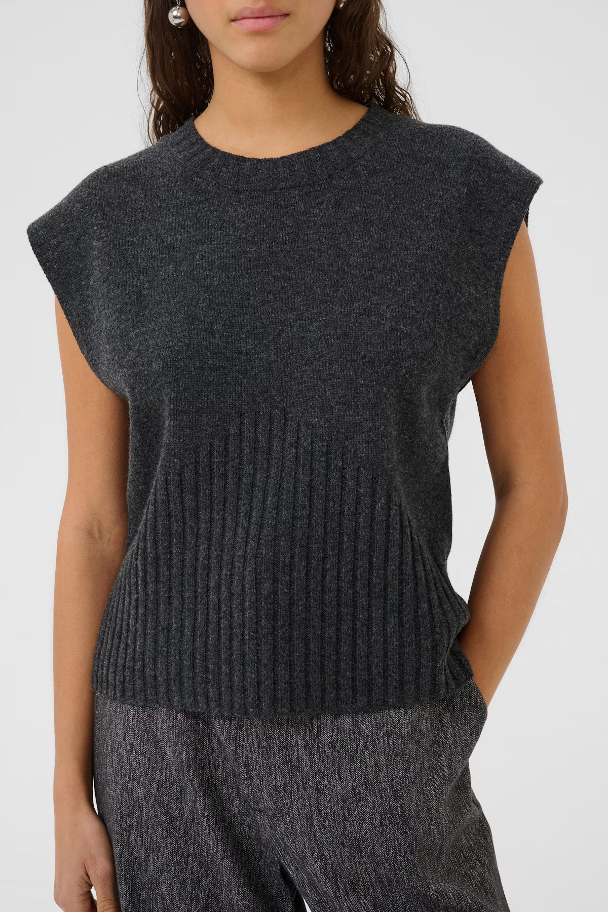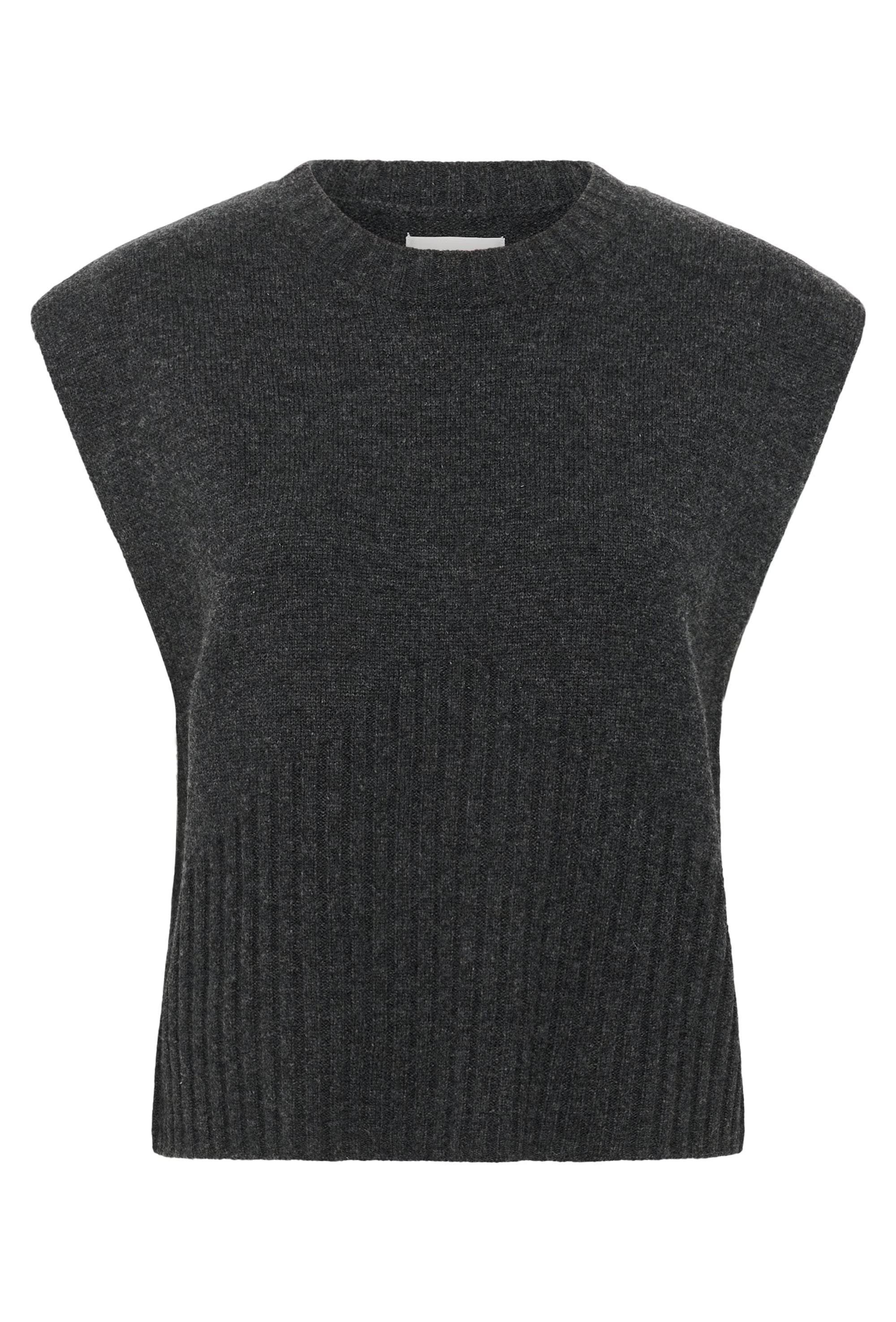 Layer up this Autumn with our 100% wool Berenice Vest. This knitted vest is designed in a timeless style with ribbed details at the front. The sleeveless design can be worn on its own or styled over a shirt or blouse for a layered look.