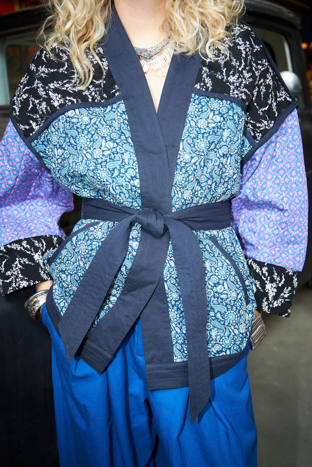 Tristy is a unique jacket in a beautiful oriental pattern. It is kimono-inspired and has a waist belt that accentuates your figure and gives an elegant silhouette. With its long, wide sleeves and relaxed fit you will return to this jacket time and time again. Made of 100% cotton, it will keep you cool this Spring and Summer.