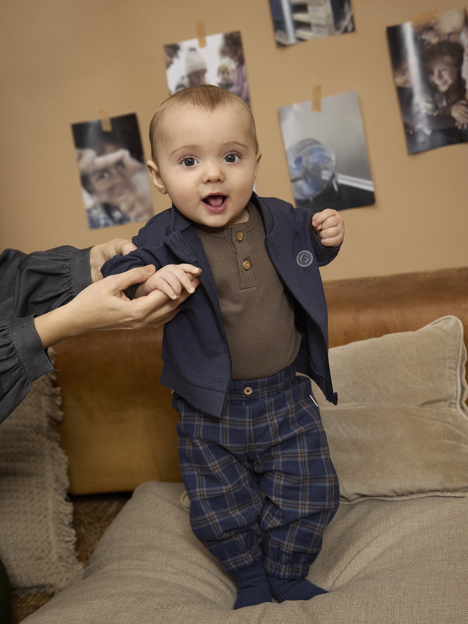 Stylish pants from Minymo. The pants feature a classic all-over checkered design, making them ideal for any occasion. They have elastic at the waistband and ankles, ensuring comfort and flexibility. The pants are made from 100% organic cotton, which feels gentle on the skin