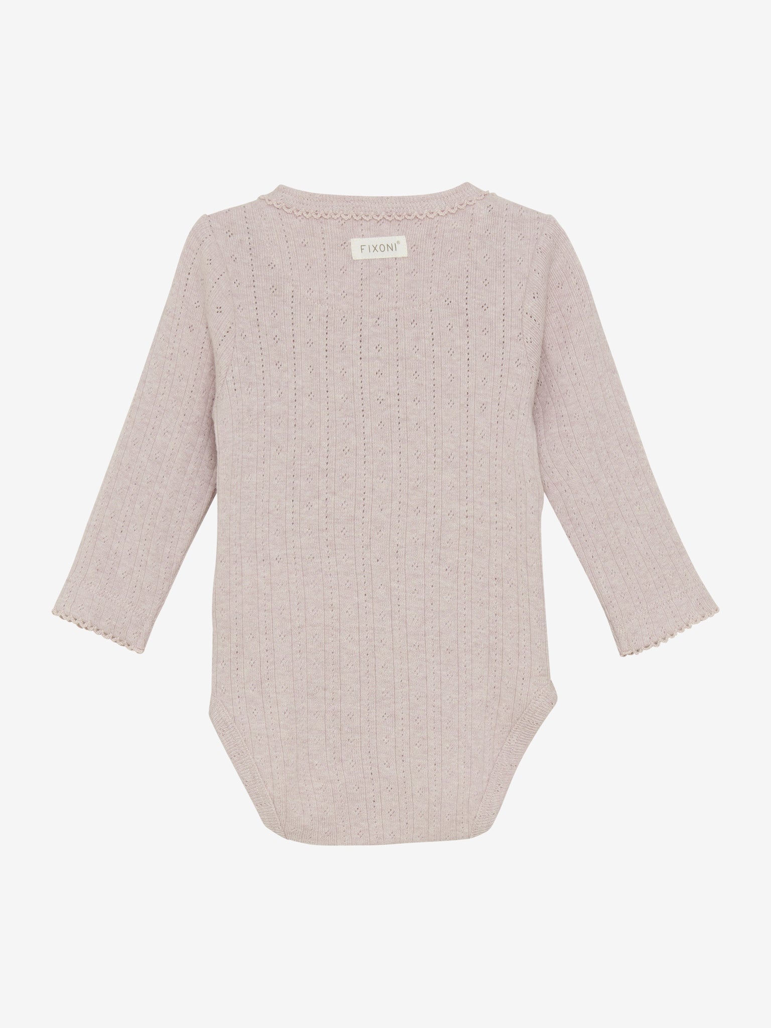 Long sleeve body from FIXONI. This solid-colored body is made out of a fine mélange quality. The body opens with practical snaps at the shoulder and between the legs, so it can be put on and off easily. Certified acc. to GOTS - organic CERES-0366