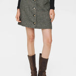 This short skirt combines classic charm with modern flair, hitting just above the knee for a flattering silhouette. Featuring a front button-down design, it adds a touch of structure and style to any outfit. Perfect for casual days out or dressed-up evenings, this versatile piece pairs effortlessly with your favorite tops and footwear.