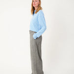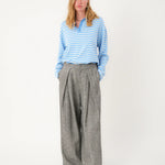 The Zola pants blend elegance and ease with their wide‑leg design, soft front pleats, and relaxed fit. A fixed waistband keeps them polished and flattering, while the exclusive herringbone pattern adds subtle texture and sophistication. Pair with a fitted knit for everyday chic.