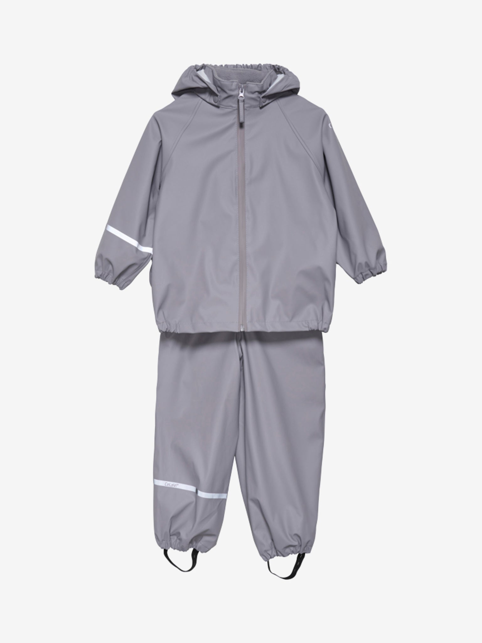 Practical and durable PU rain set from CeLaVi. 100% wind and waterproof with a water pressure of 5000 mm. Available in several color variants and have a good fit that suits both boys and girls. The rain set has many great features such as detachable hood with press snaps, front closure with both zipper and smaps, elastic at ankles and wrists, and Velcro closure at the wrist, elastic bootstraps and reflective stripe on the right arm and leg. Great fit that allows many hours of play on a rainy day