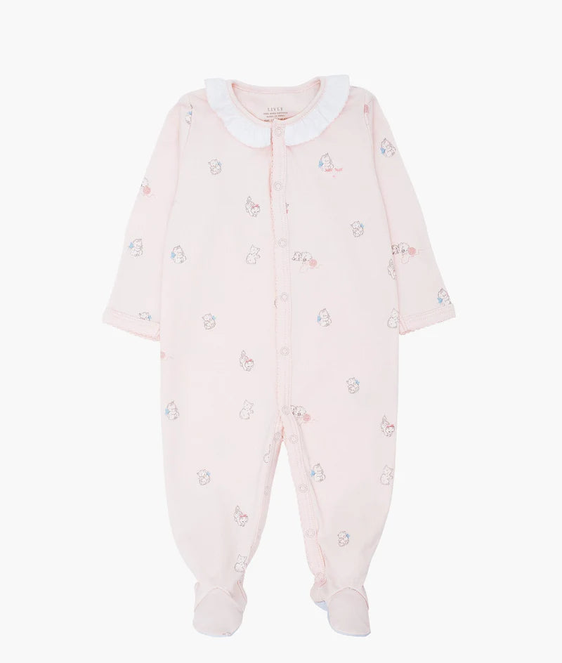 Bring your baby into the world in the softest way possible: Our ruffled footie is made from 100% hypoallergenic Pima cotton and is the perfect choice for your little ones delicate skin. Featuring our Kittens print, nickel-free snap buttons down the front, and a ruffled details for extra cuteness.