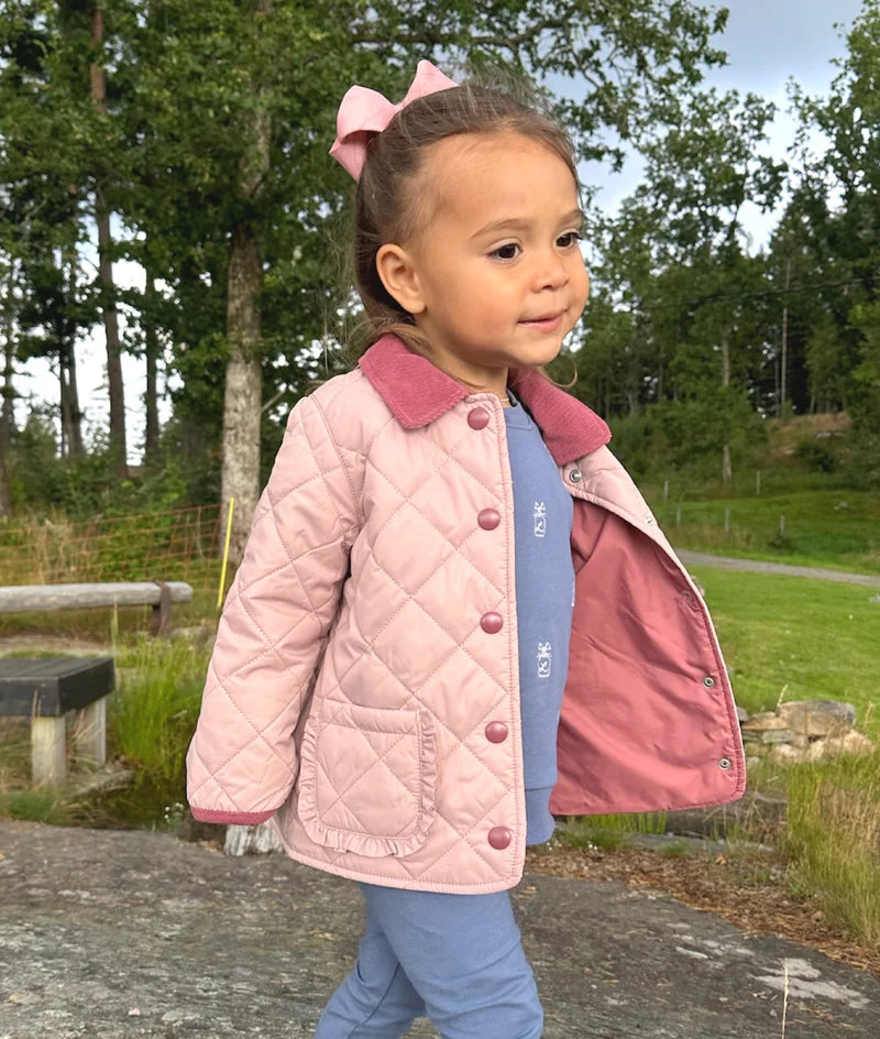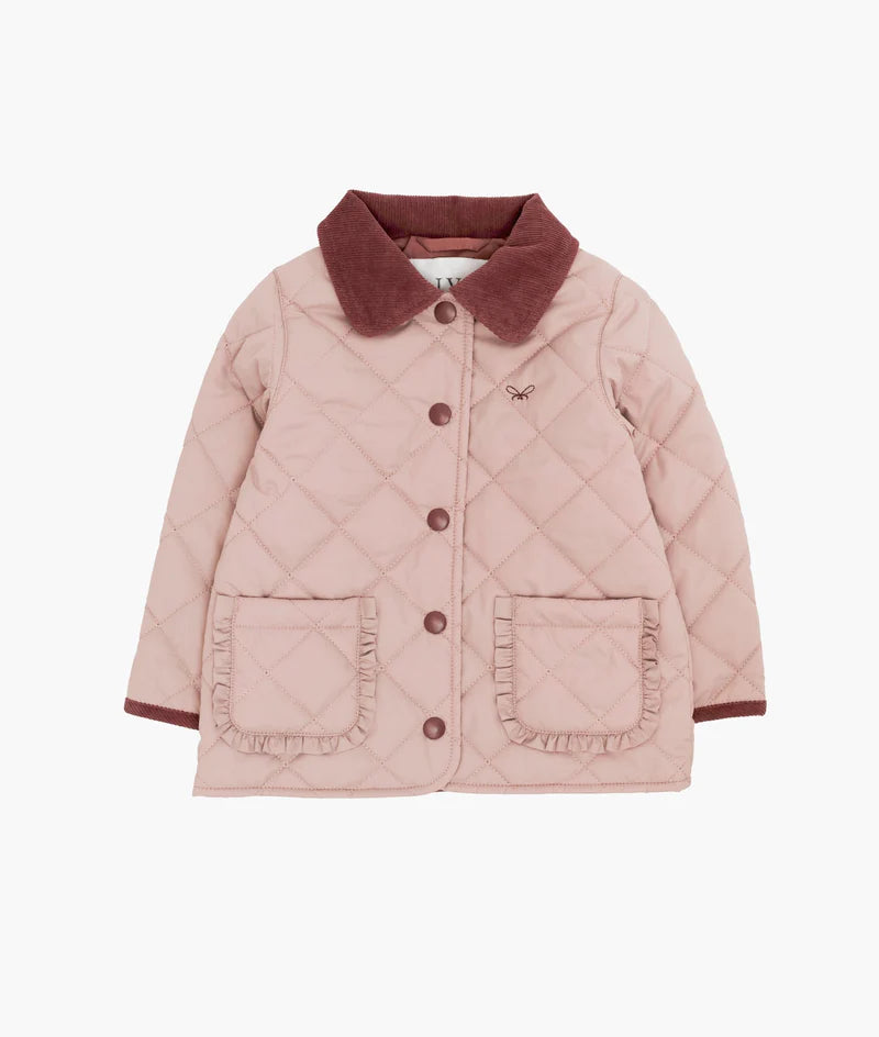 Inspired by classic British countryside style, our Leah Quilted Jacket blends timeless elegance with a playful LIVLY twist. The diamond-quilted design offers lightweight warmth, while the contrast corduroy collar and cuffs add a rich, textured touch. Front pockets are finished with delicate ruffle trims, bringing softness to this heritage-inspired piece. Perfect for breezy autumn walks, weekend outings, or layering on cooler days, it is the jacket your little one will wear season after season.