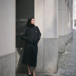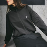Sporty and sleek, this lightweight black track-style jacket features a full zip-down front and bold white stripe detailing along the sleeves and chest. Designed for comfort and movement, it’s made from breathable fabric, perfect for layering on active days or adding an athletic edge to your casual look. Finished with a stand collar and a streamlined fit.