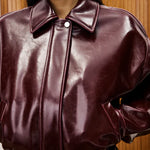 Make a bold entrance with this faux vinyl leather bomber jacket, where shine meets structure in the most stylish way. The glossy, vinyl-like texture gives a strong statement look while retaining that classic bomber silhouette. Hidden zipper closure at the front keeps the visual clean and sleek, letting the material do the talking. Two side pockets add practicality without interrupting the streamlined appearance. The ribbed cuffs and hem (or elastic trims, depending on design) create that signature bomber fit that hugs just enough without being restrictive. This jacket pairs beautifully with everything—from jeans and tees for everyday cool to dresses for a tougher, fashion‑forward edge —perfect for adding a dose of attitude to your wardrobe.