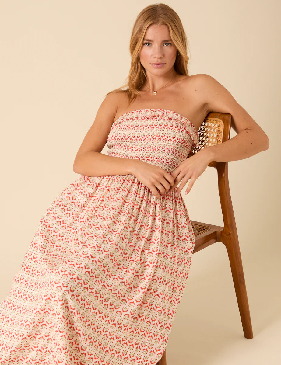 The Bella Midi is a stunning strapless bandeau dress with a structured bodice that creates a striking silhouette, balanced by a flowing midi-length skirt that moves effortlessly with you. Lightly lined for a graceful drape and featuring an elasticated waist for comfort and subtle shape, this semi-fitted dress is perfect for sun-drenched days and sunset evenings.