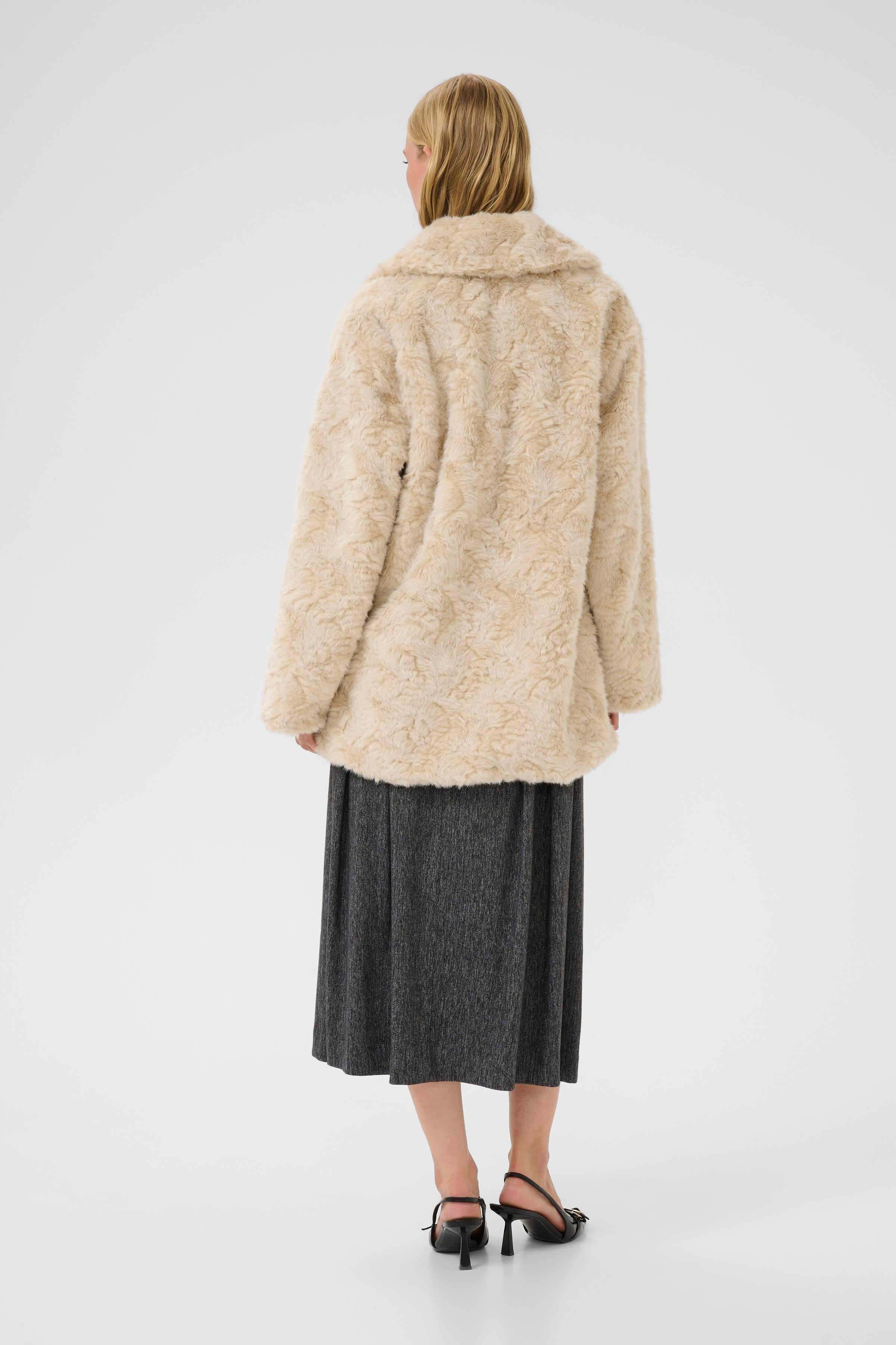 Wrap yourself in warmth and effortless style with this chic nude-coloured fur jacket. Designed in an oversized fit for a relaxed, modern silhouette, it falls to a flattering mid-thigh length, perfect for layering over any outfit. The soft faux fur adds a luxurious feel, while the invisible button-down front keeps the look sleek and minimal. Finished with discreet pockets on either side for added practicality, this jacket is the perfect blend of comfort and sophistication for the colder months.