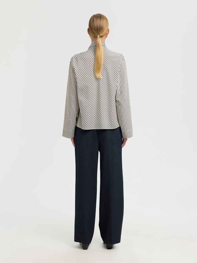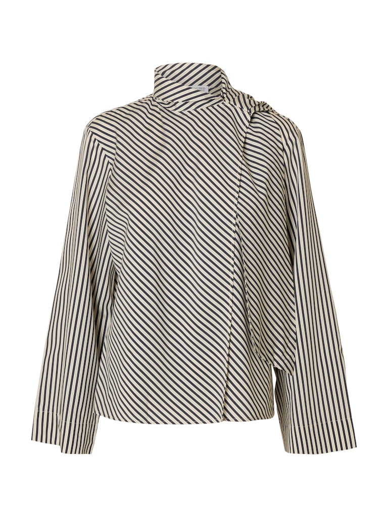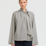 Add a bit of elegance to your wardrobe this Autumn with our Charlotte Scarf Top. Featuring a flared sleeve, striped material and scarf detail this blouse is a chic rendition of a striped shirt.