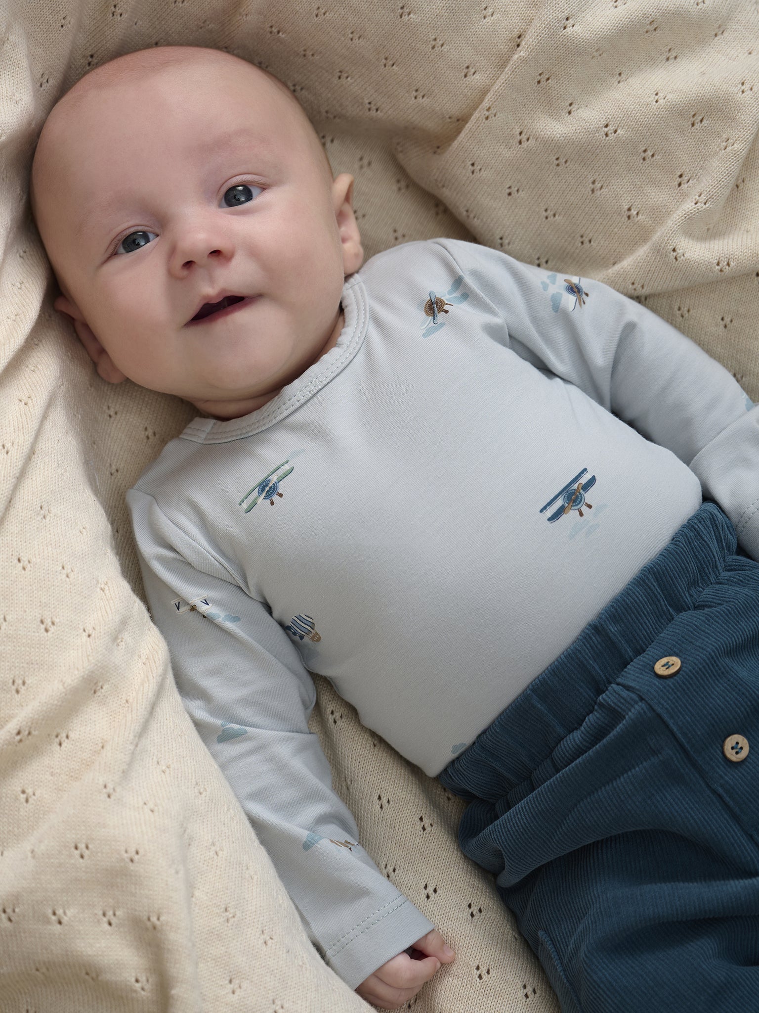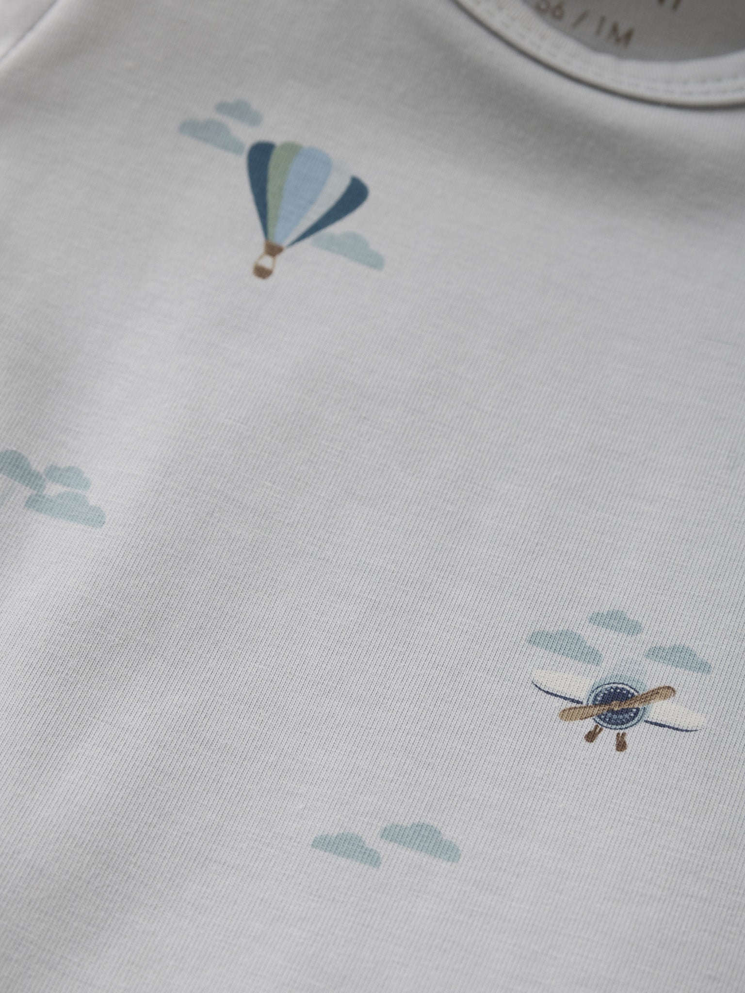 Body from FIXONI. The body can be opened at the neck and between the legs. The body is made in a soft material with an adorable kite, hot air balloon and plane print.