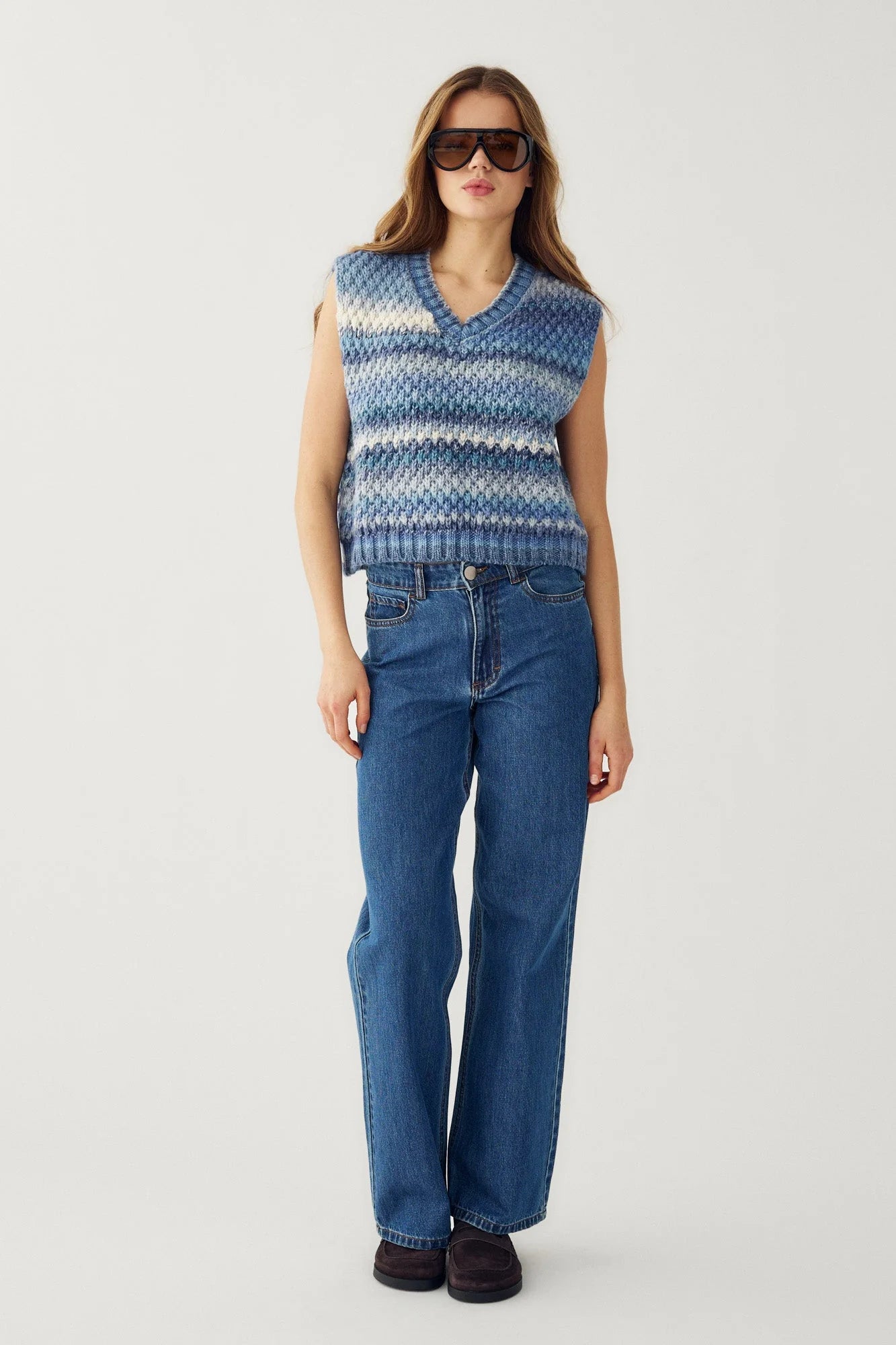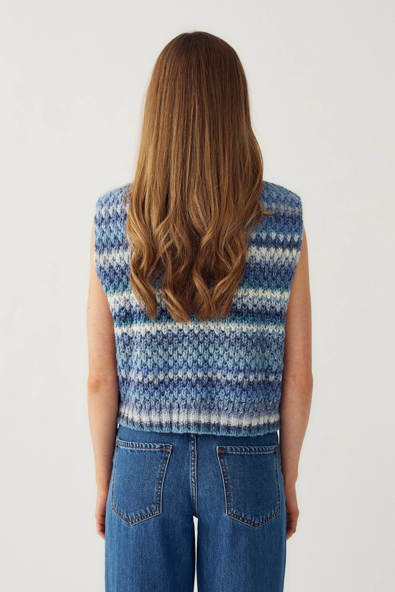 The Gio Knit Vest is a beautifully chunky layering piece designed to bring texture and depth to your wardrobe. Crafted from a soft, insulating blend of 53% wool and 47% polyester, it offers warmth without compromising on comfort. The relaxed, loose fit makes it perfect for effortless layering over shirts and lightweight knits. Finished in a sky blue mix, this is the perfect piece to add a bit of warmth but colour to your Spring wardrobe.
