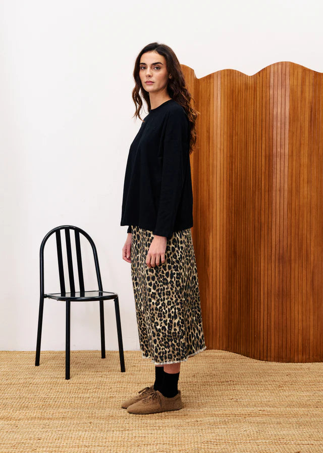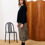 Make a statement with this long denim skirt featuring an all-over leopard print. Crafted from 100% cotton denim with exclusive FRNCH fabric, it boasts a high waist, straight cut, and zip-and-button closure for a bold yet versatile look