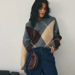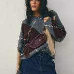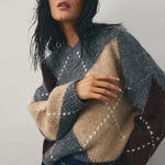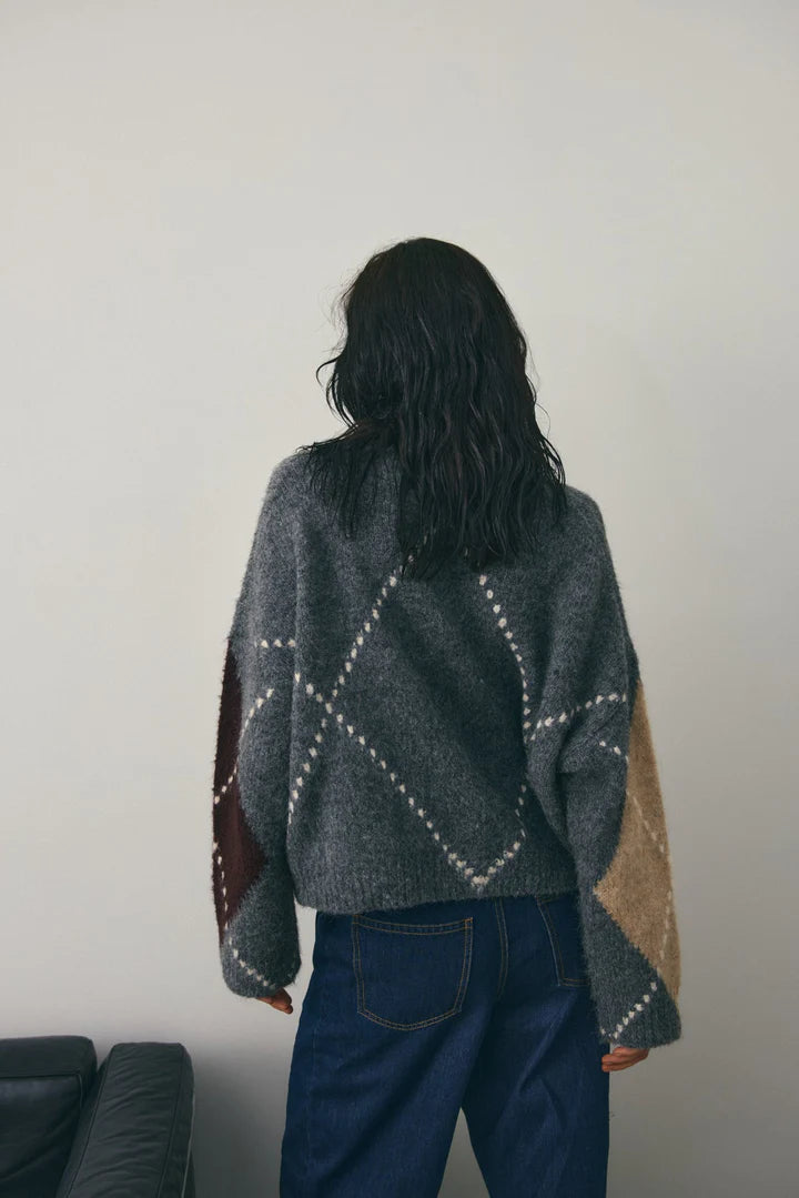Lai Knit is a classic sweater featuring an Argyle pattern. Designed with a V-neckline, long voluminous sleeves, and a relaxed fit for an elevated and timeless look.