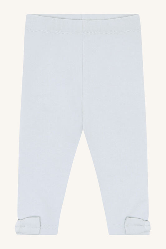 Adorable powder blue legging with bow detail on ankle. Perfect for your little one as they run about this Spring.