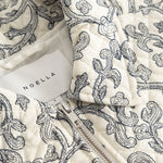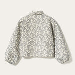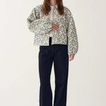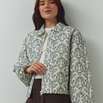 The Mariam Jacket is a short quilted 100% cotton jacket featuring delicate embroidery, a classic collar, and a front zipper closure. Style with some denim and a white tee for a casual yet stylish look.