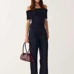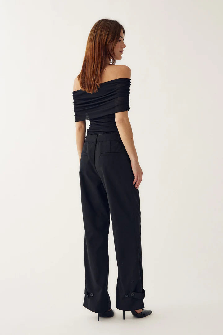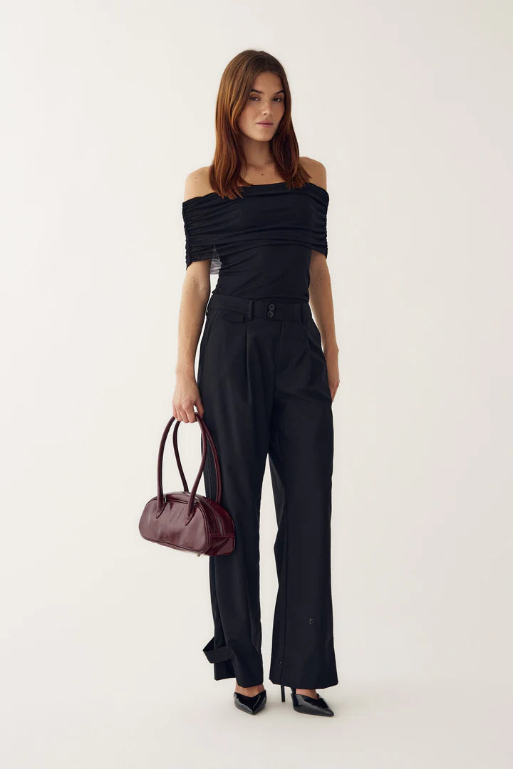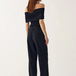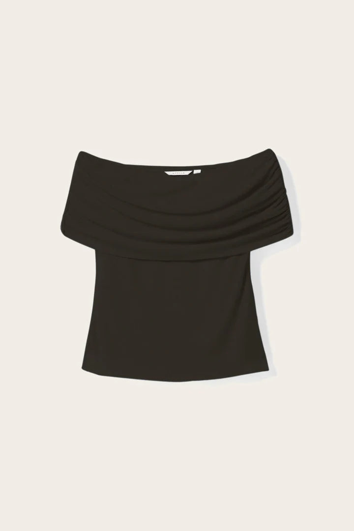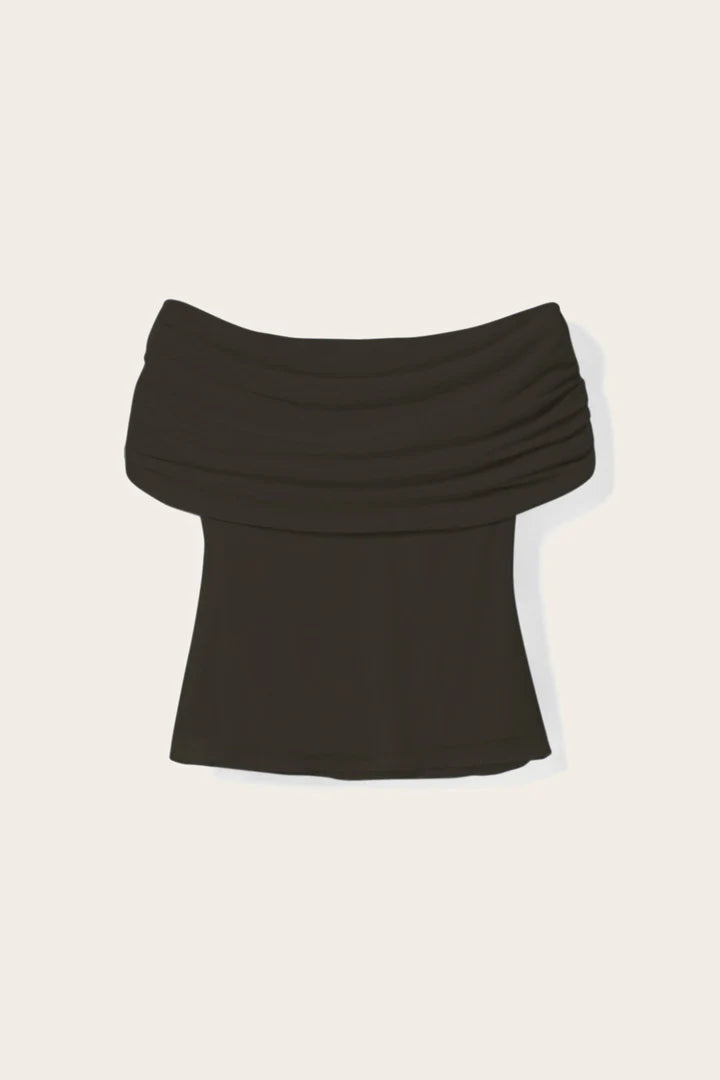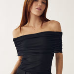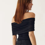 Mattie Top is in a off-shoulder design, offering a chic and flattering silhouette. The gathered shoulder detail in the light mesh fabric provides a soft feel. Pair it with some denim jeans or satin trousers for a chic evening look.