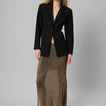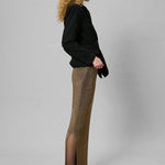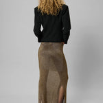Wow this winter in the My Essential Wardrobe Olly mesh knit skirt. This statement piece features a delicate mesh knit that brings both texture and movement. Dress it down with a chunky knit or blazer, or go full glam with the matching Olly Knit Top.