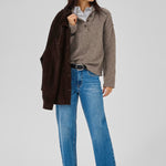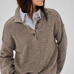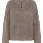 This women’s knit sweater features a relaxed fit, classic polo collar, and ribbed detailing. The buttoned placket and dropped shoulders combine style and comfort, ideal for everyday versatility in your wardrobe.