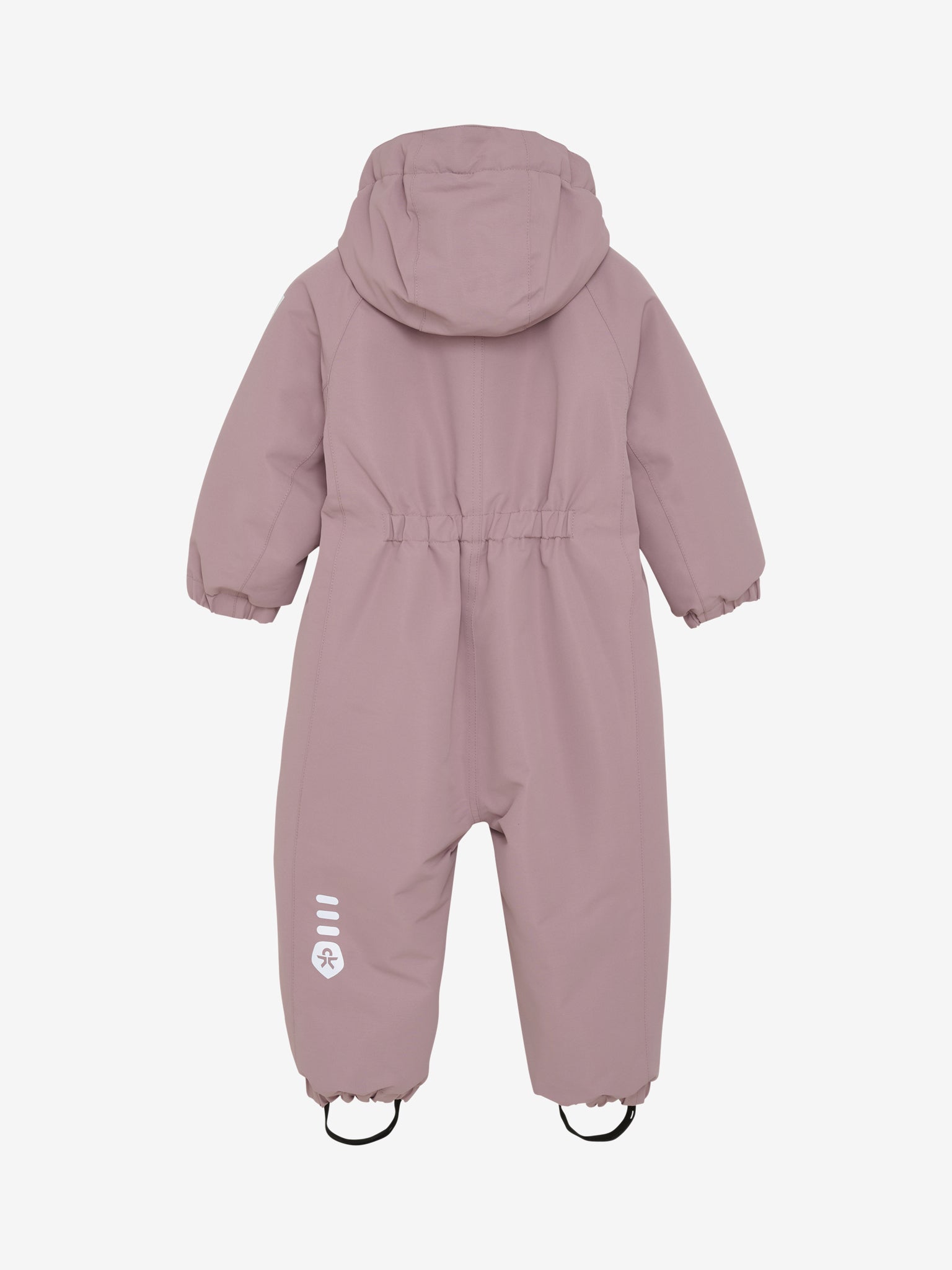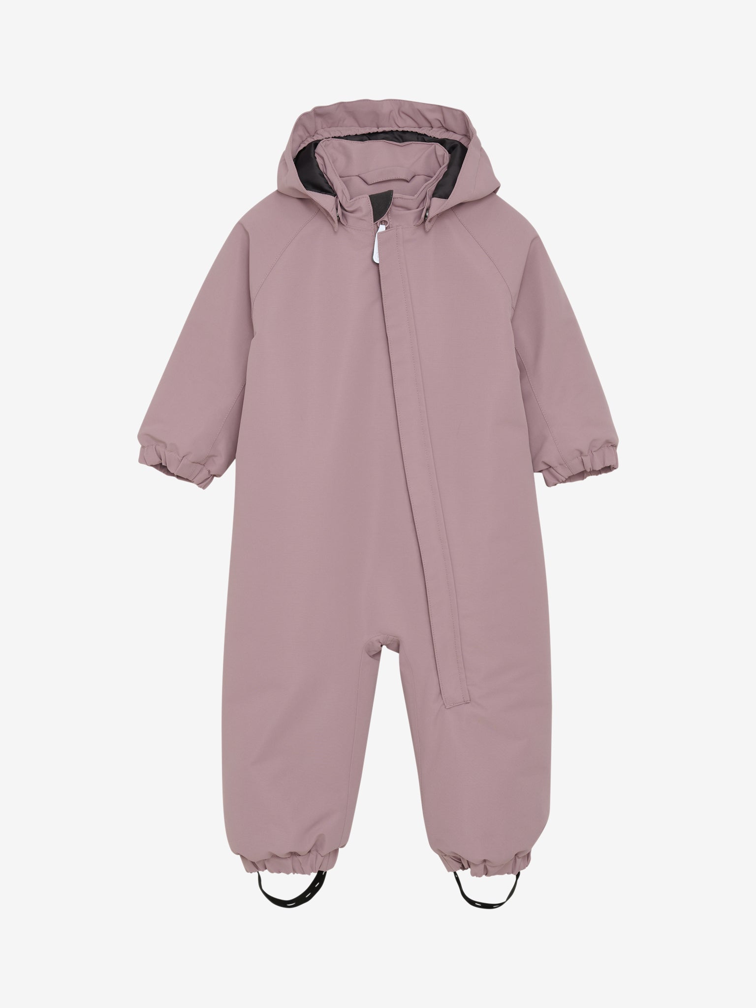 Warm coverall in durable and partly recycled material. The suit is breathable, windproof and waterproof, so your child can stay out in rain, snow and wind without getting cold and wet. Tested wear resistance of >60,000 rubs, water column pressure of 10,000 mm. and breathability of 8,000g. The coverall has a quality zipper closure at the front and on the outside pockets. The chin protector make sure that the zipper feels soft under the chin. The coverall has a detachable hood. Adjustable rubber bootstraps that can be placed under the boots to hold it in place. Reflective details on the back and on the sleeve for increased visibility. With a name tag inside for easy identification. Coated with BIONIC FINISH® ECO. Certified acc. to GRS - Made with more than 50% Recycled Material