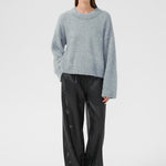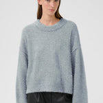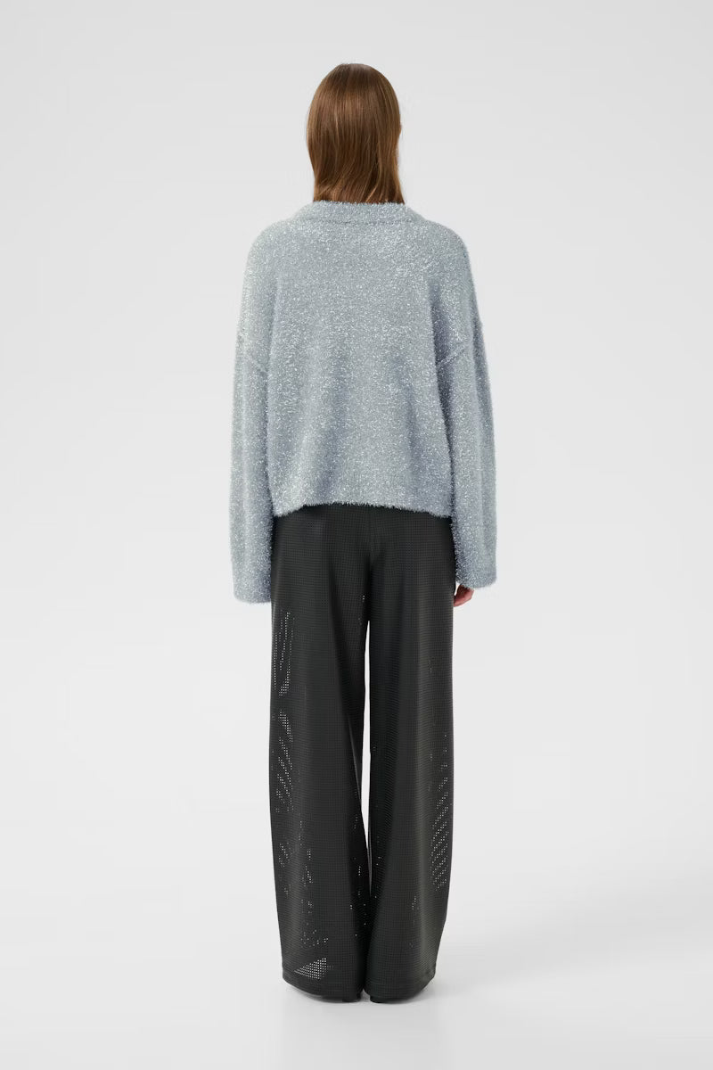 Shimmering knit sweater with relaxed fit, cozy crew neck, and long sleeves. Soft textured design offers all-day comfort and versatile style.
