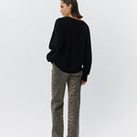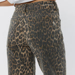 Make a bold statement with these high-waisted jeans featuring a monochromatic leopard print. Crafted with a relaxed, wide-leg silhouette and classic five-pocket styling, they offer the perfect blend of edgy pattern and effortless comfort.