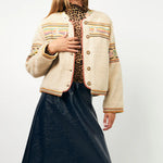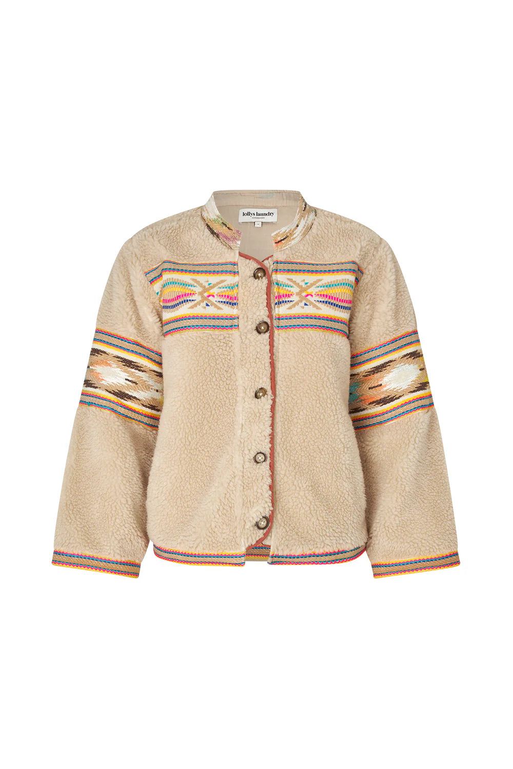 Wrap yourself in soft comfort with a touch of colour. Siri is the perfect teddy jacket, combining warm materials with eye-catching embroidered details. With the colourful embroidery on chest, back, sleeves, neckline and hem, this jacket will add a subtle bit of colour to your spring wardrobe. Size up, it runs a small.
