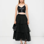 Add a touch of femininity to your wardrobe with this elegant black tulle layered skirt. Designed with a flattering high waist and a comfortable elasticated waistband, it offers both style and ease. The soft, flowing layers create beautiful movement, making it the perfect companion for your favourite tops, shirts, or cosy knits. Effortlessly chic and easy to style for any occasion.
