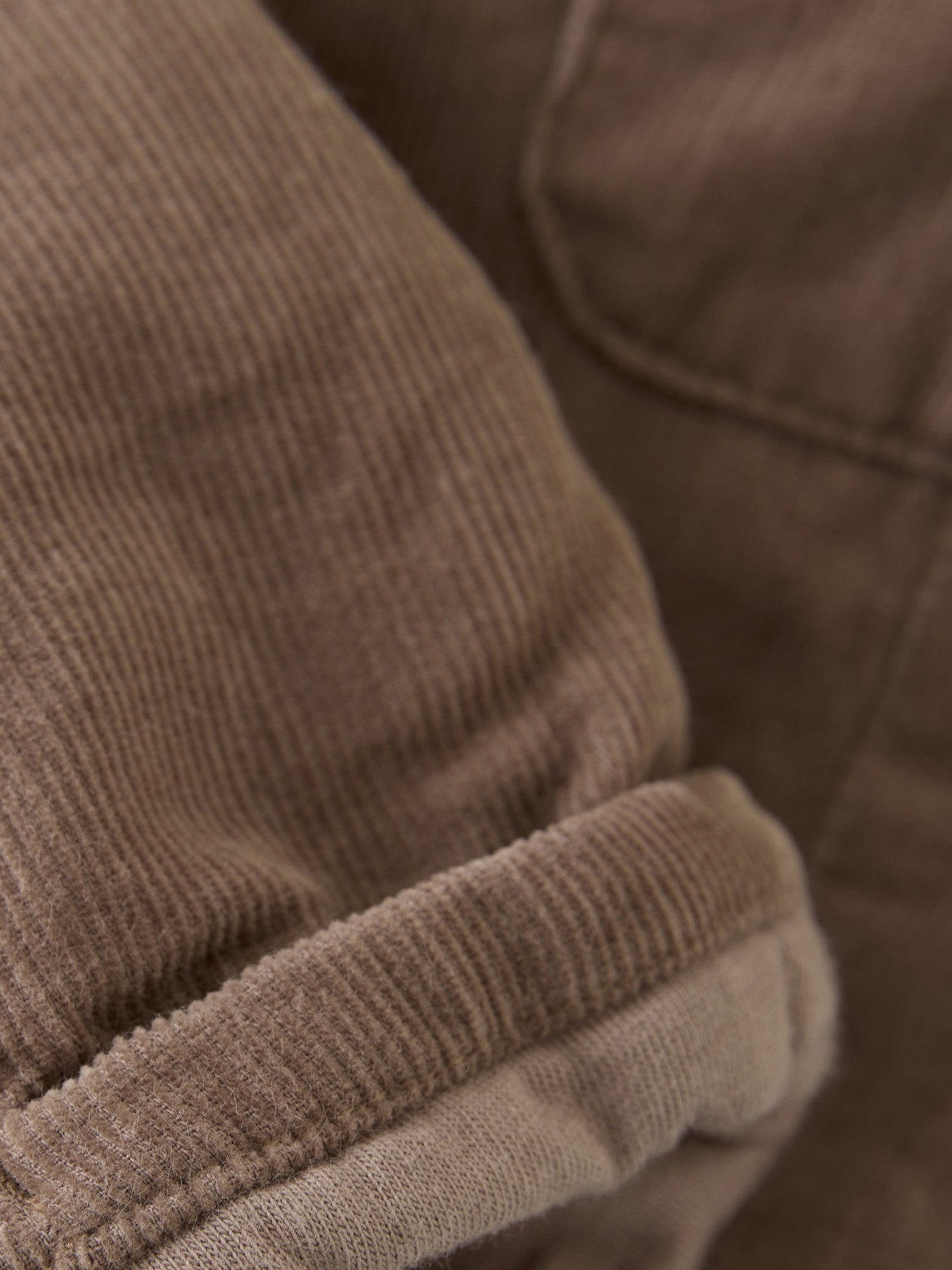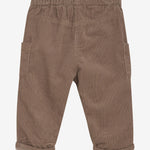 Your little one will look adorable this Autumn in our Victor trousers. Corduroy chocolate brown trousers with a tie waist and pocket details.